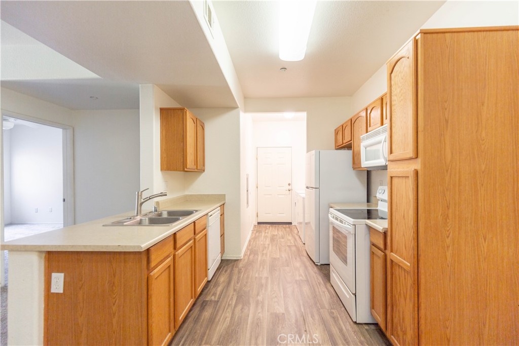 (BACK ON MARKET) Welcome home to your new condo! This spacious 2 bed, 2 bath condo is available in the gated Reserves at Madison Park community! As one of the larger models located on the 1ST floor, this home offers over 1,150+ sqft of living space, 2 full bedrooms, 2 full bathrooms, and a small reading/working area and ATTACHED 1 car garage. As you enter, you are met by a large living room, featuring a fireplace, upgraded wood flooring and neutral paint that flows throughout. Enjoy direct access to the covered patio as well! The kitchen overlooks the living room and has a breakfast bar, adjacent dining area and a built-in desk/study area. The full size laundry room is also conveniently just off the kitchen, giving you ease of access to get chores done fast and direct access to your garage. The private master suite claims one side of the home, offering a ceiling fan, carpet, large closet, and attached upgraded full size bathroom. On the other side of the home, you will find another bedroom, full size bathroom. This great condo also has a central location close to several shopping centers, restaurants and Murrieta schools. Community amenities include pool, spa, tot lot close to this unit, fitness center, clubhouse and more! Don't miss out on this rare opportunity!