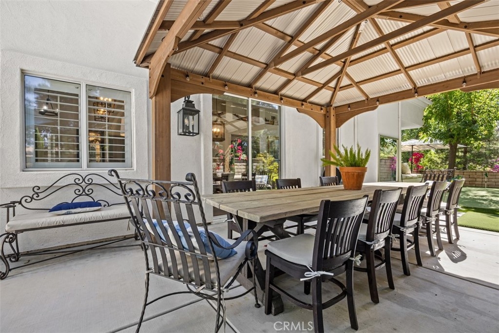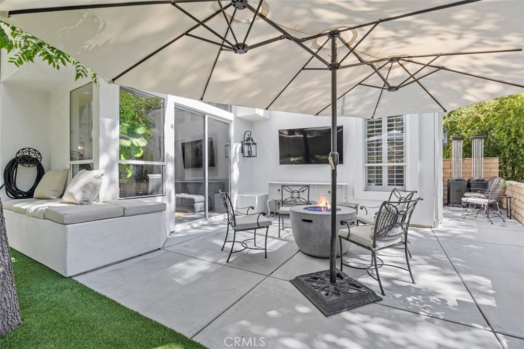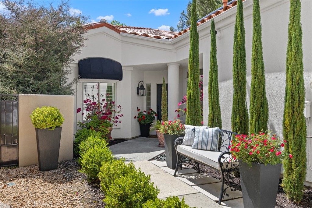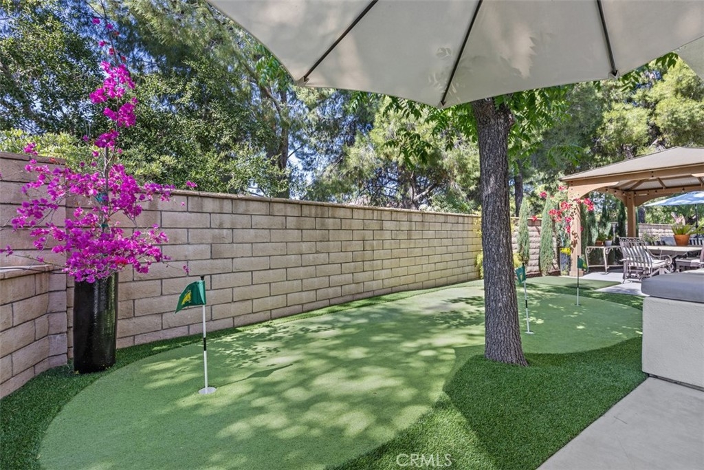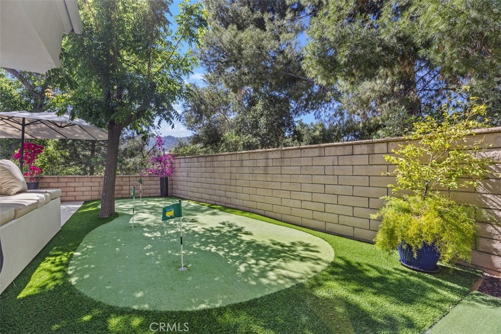 Spectacular single story unit located within the gates of the Bear Creek community. Highly upgraded and completed remodeled, light bright unit with 14 ft ceilings. Some of the upgrades include: Trane high efficiency air conditioning system, new heat pump, Rinnai tankless hot water system, whole house water purification system, Sun solar system (leased @ 159/mo), Sunburst large shutter and 240EV ready garage plug. Completely remodeled kitchen open to living/dining room, center island with seating, cabinetry to ceiling and high end stainless steel appliances. Fully remodeled bathrooms, primary includes double sinks and extra storage and closets with custom organizers. High end Pergo engineered hardwood flooring throughout. Sanctuary like private backyard with wrap around patio’s, new concrete, pergola, gas fire pit feature, putting green and sprinklers. Nothing left to do here….. just move in.