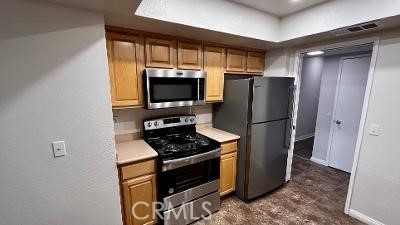 Renovated single story condo in Murrieta. You will love the layout in this 2 bed 2 bath end unit. Kitchen has all stainless steel appliances, new flooring, new vanities in bathrooms, central air and heat, multiple patio areas and a 1 car garage right next to unit. High vaulted ceilings in family room with fireplace and open windows. Washer and dryer located inside of home. Nice location in town with golf course backing up to complex, plenty of shopping up and down Murrieta Hot Springs Road. Community has a pool area walking distance from this home. All appliances, stove, microwave, dishwasher, refrigerator, washer and dryer will be included in this sale.