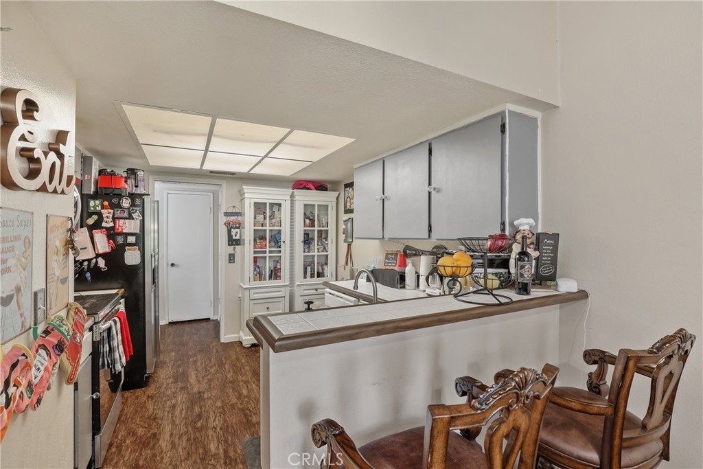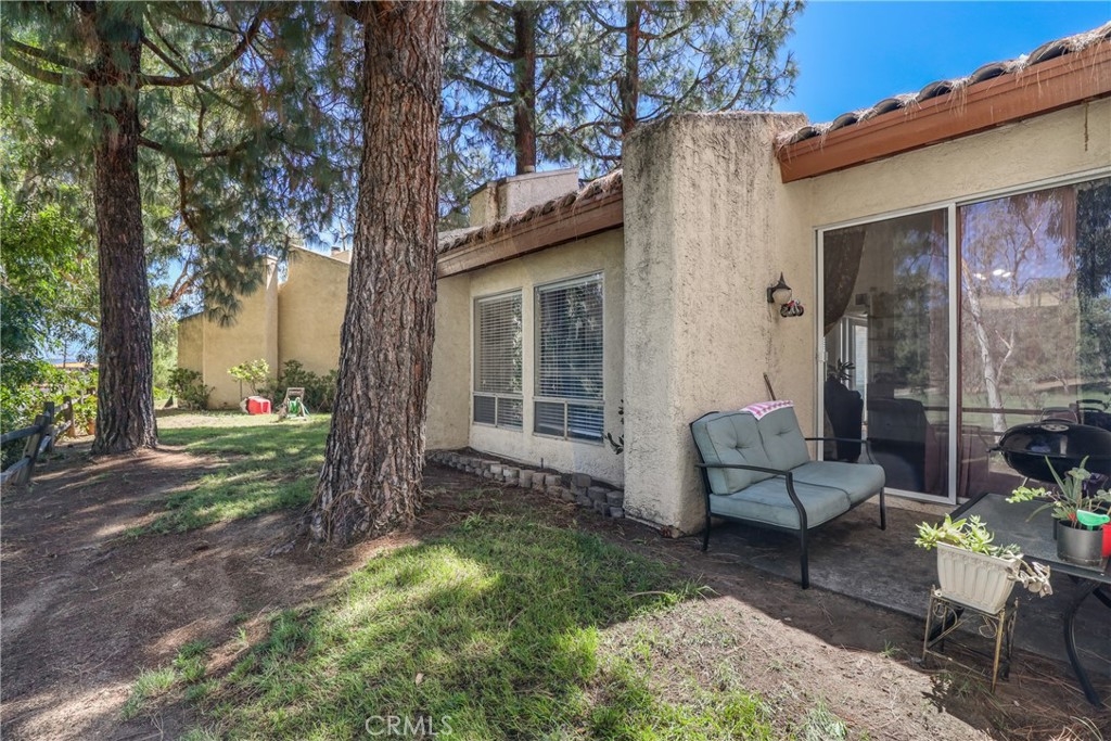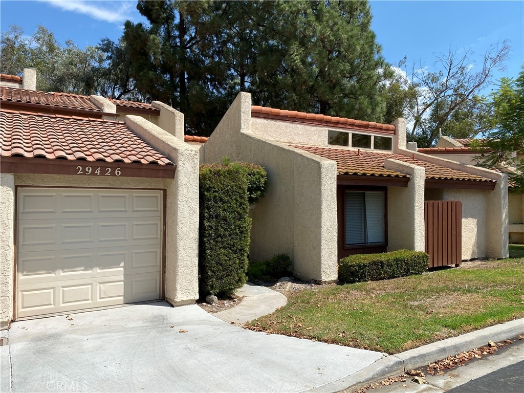 Beautiful View single story condo - end of unit - No one above. On a Cul de sac with views out back of golf course. Spacious with vaulted ceilings & large family room with fireplace which over looks beautiful greenery. Kitchen features dine-up bar & stainless steel appliances - Refrigerator included. Two patios - 1 in the back and 1 on the side yard. Master bedroom is roomy with large walk-in closet. Has 1 car garage directly in front of condo. Community pool & spa in a lush green setting. Award winning Murrieta School District. Low Taxes