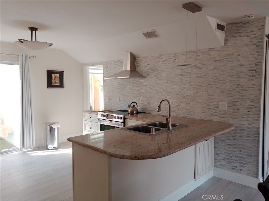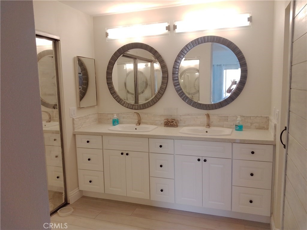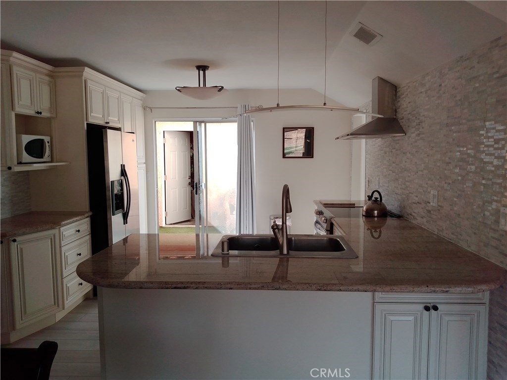 A Golfers Hideway…. Modern remodel with state of the art stone countertops, highly durable gray white wash waterproof flooring throughout, stainless steel appliances, and new cabinets. Attention to all details. Master bedroom has oversized vanity area with separate shower/toilet. Also, has large deck off masterbedroom that overlooks golf course. All bathrooms remodeled with new contemporary flooring, fixtures, vanities. Property has large windows and sliders with cathedral ceilings. Dramatic open areas with lots of natural light and backs to golf course. Views from almost every window. Large patio off dining/living room that overlooks golf course. This quiet, serene location is at the end of cul-de-sac inside of development. 1 car garage with direct access. A lovely enclosed courtyard between condo and garage. Perfect for pets, plants, private relaxation, etc... Computer foldout desk located under the stairs for convenient, stowaway office. Condo complex has pool and no through roads (one entrance/exit only). A hidden paradise located close to Temecula mall and all city amenities.