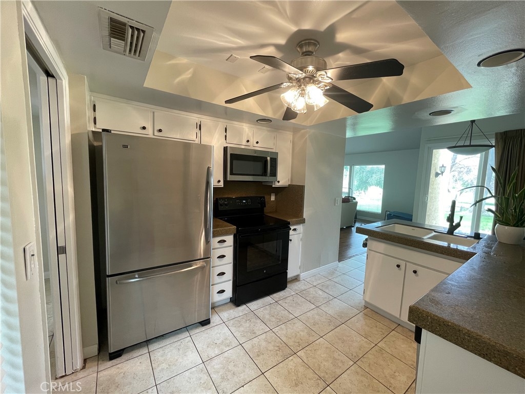 On THE GOLF COURSE! ONE STORY END UNIT. Updated and freshly painted! Hard surface floors throughout, high ceilings and open spacious floor plan with private atrium patio fenced in plus second patio with sweeping views of golf course. The large living room is graced with fireplace and the big views of the golf course. Kitchen has solid surface counters, new microwave, 2 yr new range, stainless steel refrigerator and ceiling fan. Master suite boosts a remodeled bathroom with huge shower, cedar lined walk in closet, floor to ceiling linen storage closet, dual lavs and a beautiful build in cabinet in the master. Patio doors from the master open to private fenced patio. The second bedroom is immediately adjacent to hall bath that has been updated. Hallway linen storage too! Inside laundry facilities in hallway. Maytag washer and dryer are included. All the windows and 3 patio sliders have been upgraded to vinyl clad, dual pane. This property is so open, light and airy it feels much bigger. Super location in Ridgegate development as immediately across from large parking lot and very short walk to pool across Paseo Corta street. Central location in Murrieta with great access to Hwy 79, I-215 and I-15 as well as shopping and conveniences.
