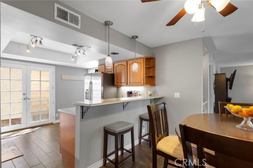 Welcome to the Ridge Gate community- centralized to all the exciting restaurants, shopping, great schools, close proximity to the 215 freeway- yet surrounded by the serenity of the greenery and being adjacent to the SCGA Golf Course. 38985 Paseo De Oro is a turn key townhome with beautiful upgrades. The open floor plan downstairs showcases a bright and airy living space with vaulted ceilings in the living room accented by the calming grey paint scheme, contrasted by the beautiful dark wood like tile flooring. Floor to ceiling plantation shutters add a special touch as well. The clean lined kitchen features stainless steel appliances, ample cabinet and counter spaces and a connecting dining room- making family meals and entertaining a breeze. The upstairs area has graciously appointed MASTER suite and also a 2nd bedroom. All came with great storage options. Access your detached garage through a private courtyard. Fantastic opportunity to own your own home within a desirable community!
