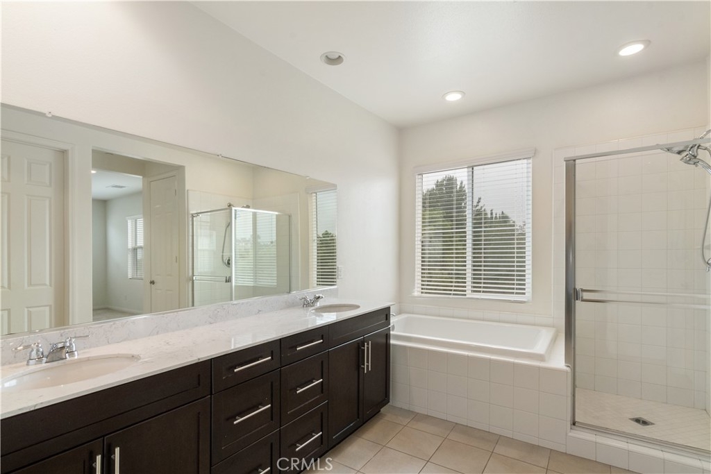 Upscale newer 5 Bed/3 Bath 2-story single family detached condo in the gated community of Seneca. This well appointed stylish modern home boasts great features like 9' ceilings and 8' paneled doors throughout, a large Great Room, perfect for entertaining, a well equipped Kitchen with all SS appliances, Granite countertops, Medium Maple stained cabinets, a pantry and large eat at island. There is a private Downstairs bedroom and a full bath. The Master Suite features a large walk-in closet, an adjoining loft, a separate tub/shower with acrylic and tile detailing. You will love the convenient upstairs laundry room. Main level tile flooring in the Great Room, carpet in the BRM. Sunny private fully fenced larger backyard. 2 car garage. Comes with several energy saving features like radiant roof barrier, tankless water heater, dual glazed vinyl windows, sliders and more. This highly sought after Murrieta area home is near both the Promenade Mall and Murrieta Town Center, Highly Ranked Distinguished Schools, Harveston Lake and easy Freeway access. Don't miss your opportunity to live in one of the best areas in town. This one won't last, make it your new home. The home has beautiful window coverings and a landscaped backyard.