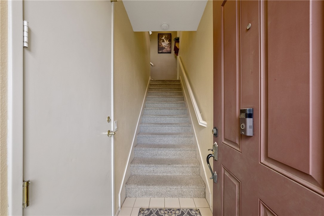 Location is everything and this end unit at the Skyview Ridge community is no exception. This property has all you need and more because you have so much privacy with this one as its a premium lot. Quick access to freeway, including nearby shopping, restaurants and more. Lower level private entry, that leads to the upstairs where you have a single story living area with laminate wood and tile floors. Open kitchen with bar seating. This condo has room to entertain with the open concept living room/dining area and a slider leads to a, private, under roof patio with room for a BBQ and table w/ chairs. Two bedrooms, two full baths + office/tech center plus an indoor laundry closet with stackable washer and dryer. Master features double sink with walk in closet. There is also a 2 car attached garage that offers ample amount of storage space. Come by and check this one out before its too late!