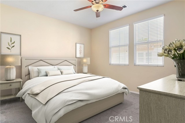 Price Improved!! Seller can accomodate a quick close if needed. Welcome to this wonderful and spacious condo in Skyview Ridge! This home offers a direct access 2-car garage. Upstairs, you’ll find an open layout with dining, living, and kitchen areas. The living room includes a built-in office nook and a tile surround fireplace, while a glass slider from the dining area leads to a private balcony with excellent natural light. The hallway off the main living space features 2 spacious bedrooms, 2 bathrooms, and a convenient stackable laundry closet. The primary suite boasts a walk-in closet and dual sink vanity. Skyview Ridge offers great amenities, including a sparkling pool, spa, playground, and picnic areas. Conveniently located off Clinton Keith Rd, this home is close to local schools, shopping centers, dining options, and the 215 freeway. Don't miss out on this fantastic opportunity!