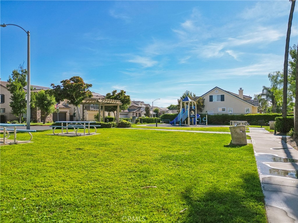 FANTASTIC SKYVIEW RIDGE HOME W/ UPGRADES! This is the one you've been looking for! Built by DR Horton in 2005, this well designed home & complex has so much to offer! The entry has a spacious patio with room for a BBQ, table, and is perfect for outdoor entertaining. The downstairs living space boasts an open concept, tying together the dining, living area and kitchen seamlessly. You're sure to appreciate the open feel that the high ceilings create. The living area has an entertainment nook, crown molding and an upgraded gas fireplace. The kitchen has tile counters, plenty of cabinetry w/ storage and gas appliances. There's direct access to the 2-car garage as well! The downstairs bathroom has been upgraded w/ a newer vanity, mirror and stylish light fixture. Upstairs you'll find all three spacious bedrooms. The secondary rooms are both larger than you'd expect and have plenty of natural light. The primary suite is a great size and has direct access to a private bath w/ a dual vanity and shower/tub combo. ***Other upgrades to note*** A whole-house IQ Air Purifier was installed this year, the A/C condenser & coil were upgraded late last year, the garage door has a new motor & springs and there is a custom glass entry door. Skyview Ridge offers access to two pools, a playground, a grass area and there's plenty of guest parking throughout the community. There's also a trailer storage area which is just a little extra per month. Talk about a convenient location!!! Costco, Aldi and several dining options are all a short walk away! Looking for something to do in the area? The Temecula wineries are close or go enjoy Los Alamos Hills Sports Park! Set up a tour to see this great home now!!! ***VA & FHA Approved Complex***