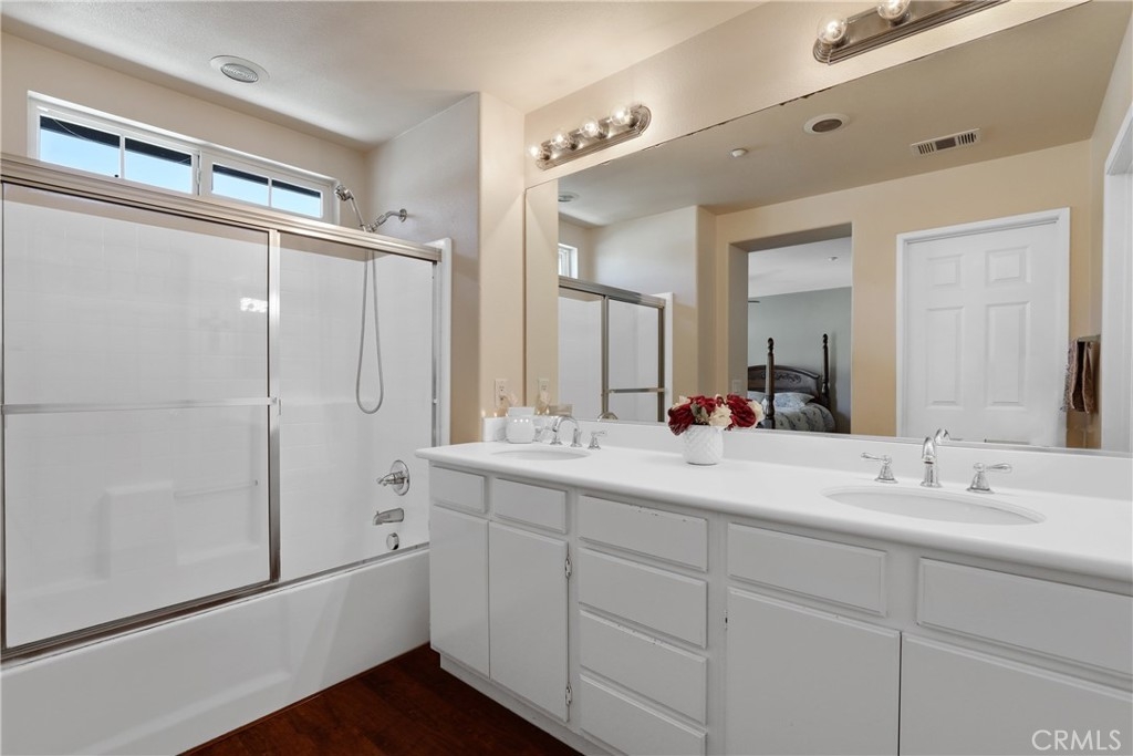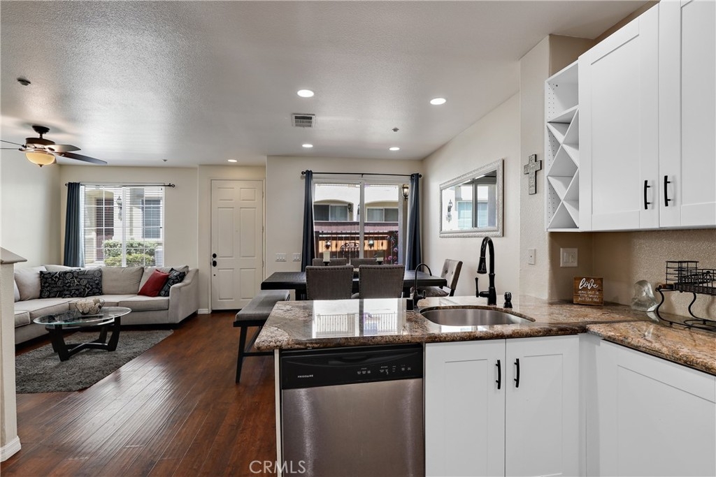 Check out this GORGEOUS Condo in West Murrieta! This lovely two story home features 3 bedrooms with a small loft, 2.5 baths, and a 2 car attached garage. The kitchen is a dream with upgraded white cabinetry, beautiful granite counters, quiet shut drawers, and stainless steel appliances. The kitchen opens to the dining room area and living room, and there is an adorable patio just off the dining area. Engineered hardwood flooring is installed throughout the entire home. All bedrooms are located upstairs with the main bedroom featuring a walk in closet , and a small terrace. There are dual vanities and a shower/tub enclosure in the main bathroom. Enjoy the convenience of having the washer and dryer on the upper level and a small loft area that can be used as an office space, work out area, or reading room. This property is just minutes from the beautiful historic downtown Murrieta, with restaurants like Anthony's Italian, The Mill, Wine Ranch Grill, The Crafted Scone and other shops. Murrieta Valley High School is also located less than a half mile away. HOA is just $265/mo. Community features a small playground area and picnic area for residents to enjoy. This home is not FHA/VA approved at this time.
