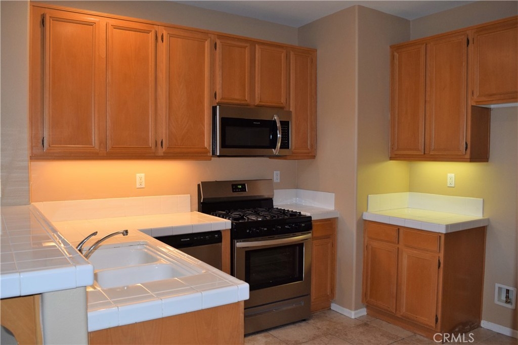 Welcome to Sonrisas Condominiums. Downstairs has a spacious living room, dining room with slider to access your patio, kitchen with brand new stainless steel appliances, tile counters and under cabinet lighting and half bath. Downstairs has tile flooring throughout. Going upstairs you will find a large loft with built-in desk, perfect for kids school area or home office. Bedrooms are both good size. Hallway bath has been remodeled with new flooring, new vanity with faucet and new toilet. Master has door to balcony patio. Master has attached master bathroom with dual sink vanity, walk in closet, tub/shower, tile flooring. Stairs, loft and bedrooms have brand new carpet. There is a convenient laundry closet upstairs with washer pan and water connections already there. There is a large linen closet near the laundry. Condo features 2" blinds throughout, new smoke/co detectors, fire sprinklers and an attached 2 car garage. HOA community has a tot lot area with benches and is pet friendly. Located near the Historic downtown district of Murrieta.