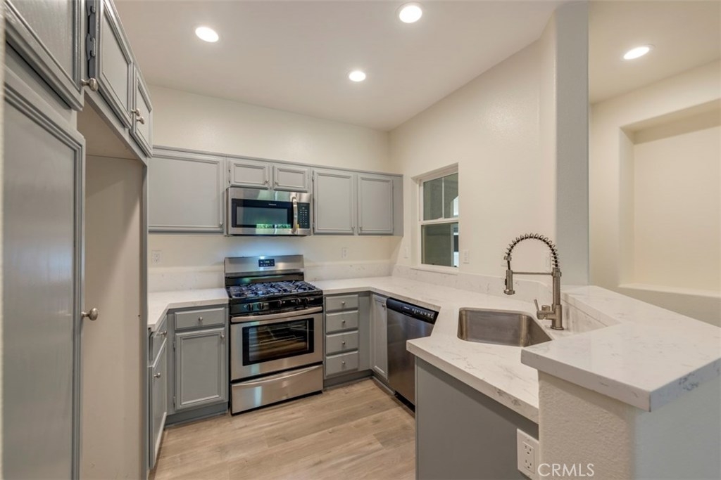 Beautiful Condominium in Verona Gated Community. Well renovated one bedroom and one bathroom lovely size unit with New Laminated Floor, New Laminated Floor, New Quartz Countertop in Kitchen, New Quartz Countertop and Cabinet in Bath, New Custom Paints, New Recessed Lights, and New Stainless Appliances. Has fireplace in good size living room and has inside laundry. Community amenities have Pool, Spa, Gym, and Barbecue area. Must see this sweet home in Murrieta.