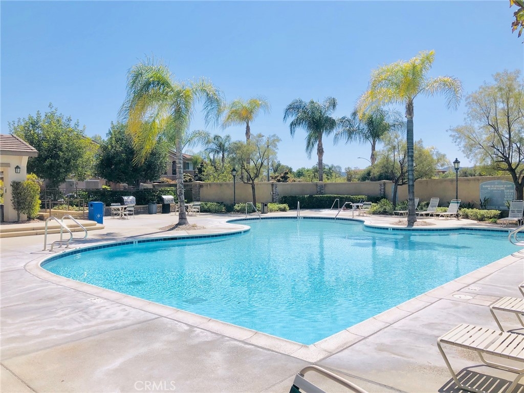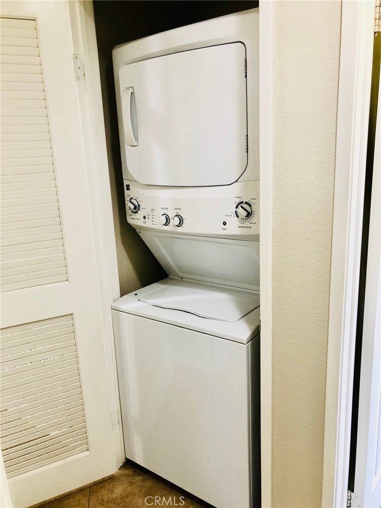 Charming Ground Floor condo in the popular Verona community! This move-in ready unit is nestled in the front of the complex, with a spacious & private patio off the living room / dining area. This open floor plan features a gas fireplace and tile flooring throughout the unit, except for carpeted bedrooms. Brand new carpeting just installed in the guest bedroom. The bedrooms are spacious, with a full bath and in-unit laundry directly across the hall, stackable washer / dryer included. Kitchen has lots of cabinets for storage and refrigerator included. A detached one car garage with storage is conveniently located steps away from the unit, with additional parking close by. The complex features a pool, spa, exercise room, clubhouse, BBQ area and gated entry! Fantastic opportunity for the first time buyer or investor. Blue-ribbon Murrieta School District and close to Temecula Promenade Mall.