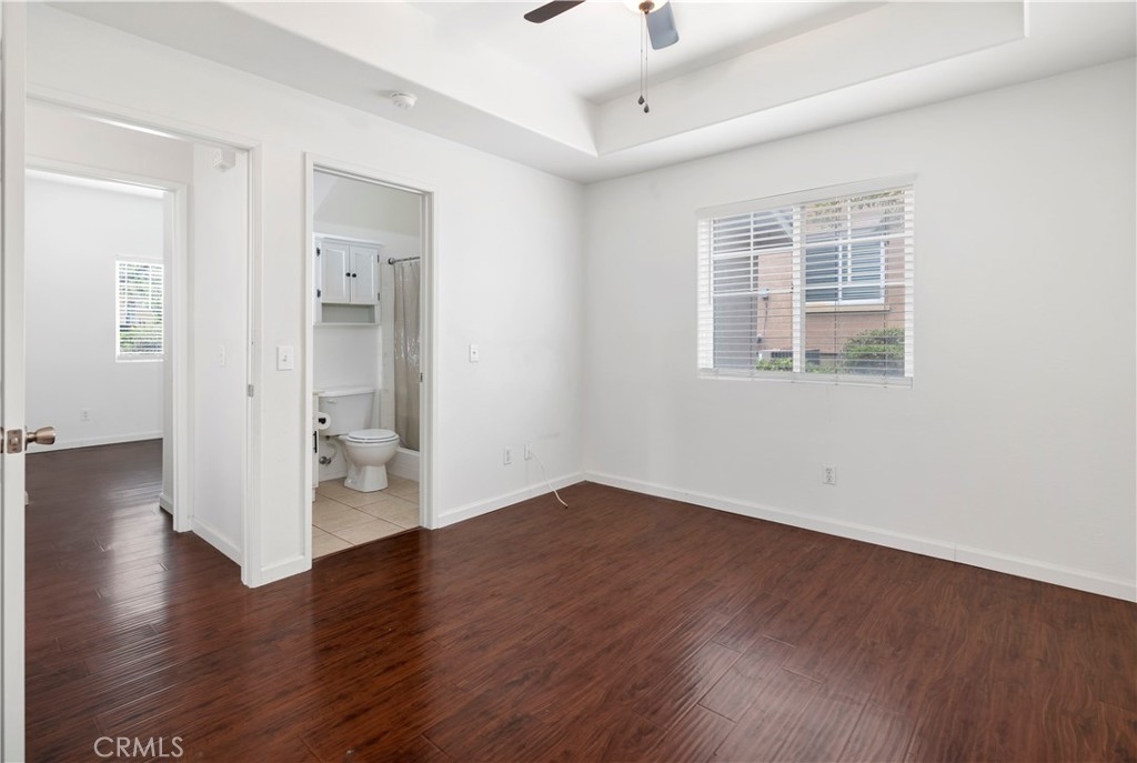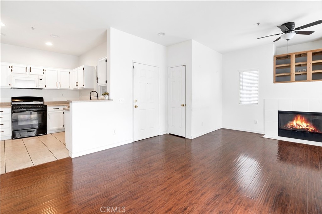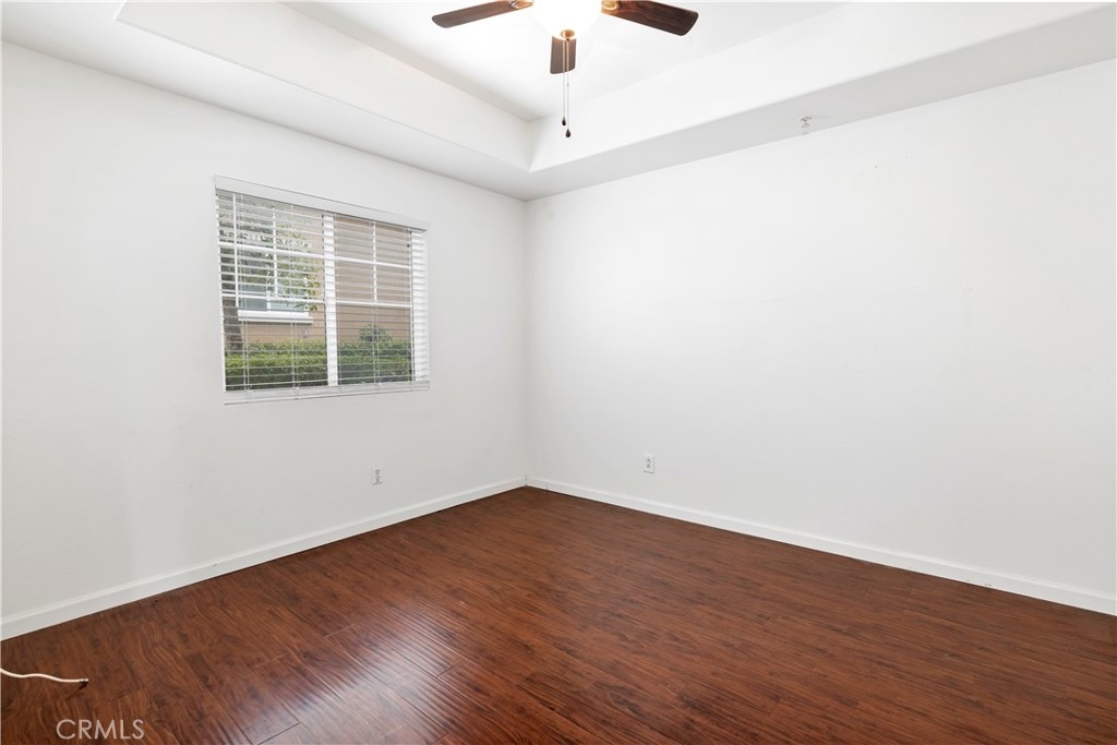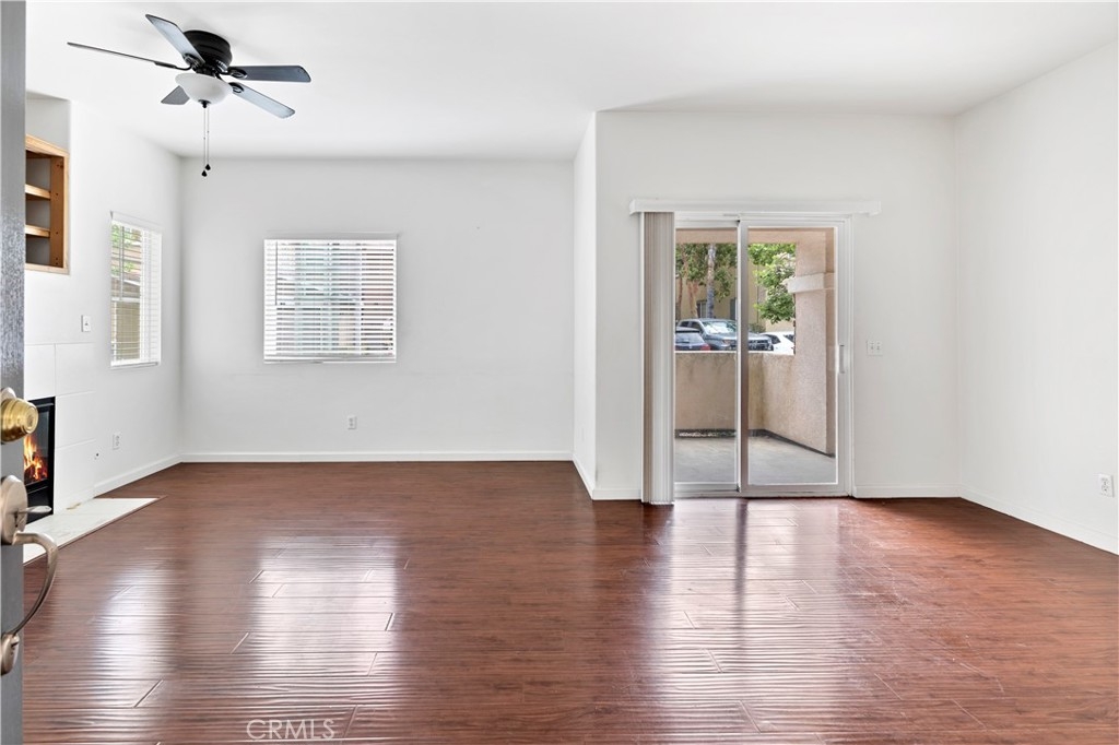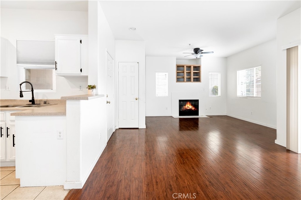 Welcome to this charming ground level condo in the gated community of Verona! This 2 bedroom, 2 bathroom unit features 890 Sq Ft of living space and a detached 1 car garage. As you enter, you'll be greeted by beautiful laminate flooring throughout the family room, which includes a cozy gas fireplace and ceiling fan. The dining area, located to the right of the family room, provides direct access to a private patio perfect for enjoying a morning cup of coffee or evening glass of wine. The kitchen is equipped with plenty of cabinet space, a breakfast counter, and white appliances. A stackable washer/dryer hookup can be found in a closet down the hall. The master suite boasts a ceiling fan, single sink, shower, and walk-in closet. There is also a secondary bedroom with a ceiling fan and a separate bathroom. Residents of Verona have access to a fitness center, pool, and spa, perfect for relaxing and staying active. The community is conveniently located near Buchanan Elementary school, shopping, dining, and the 215/15 freeways. Don't miss out on this fantastic opportunity to make this condo your new home!