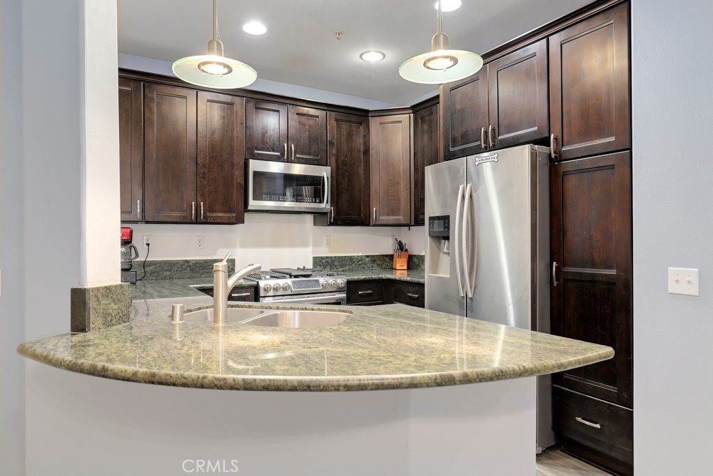 TOTALLY REMODELED ARBORETUM CONDO! This 2 Bedroom plus a Den layout is just enough space! The open Living, Kitchen, and Dining Room allow plenty of space to entertain and make the condo feel much more spacious than it is! You're going to love the remodeled Kitchen with Espresso cabinets and granite counters. The Kitchen showcases soft close cabinets and drawers with Stainless Samsung Appliances. There is wide plank gray LVP throughout the entire home. The home has been painted a soothing gray color, making it neutral and relaxing. Both Closets in the 2 Bedrooms feature Closet Organizers from California Closets, which more than doubles your storage space! The Primary Bedroom has its own ensuite Bathroom with a brand new Shower and an upgraded single sink Espresso Vanity. The Secondary Bedroom is down the hall, offering plenty of privacy and it has the Secondary Bathroom immediately next to it. The Bathroom has a Shower/Tub Combo and an upgraded single sink Espresso Vanity. Both Bathrooms have new toilets too! Off of the Livingroom is a French Door that leads to a cozy little patio with artificial turf and a small storage closet. The great thing about this Condo is PRIVACY! It backs up to a slope that is landscaped, keeping it quiet and tranquil outside for your enjoyment. This unit includes a single car detached garage! The Arboretum is a gated community with a Pool and Jacuzzi as well as a Workout Room. It's minutes to both the 215 and Freeways as well as all major shopping. There aren't currently any Condos on the market in this community and oftentimes you don't get updated condos in this community. This place is beautiful! Come check it out today!