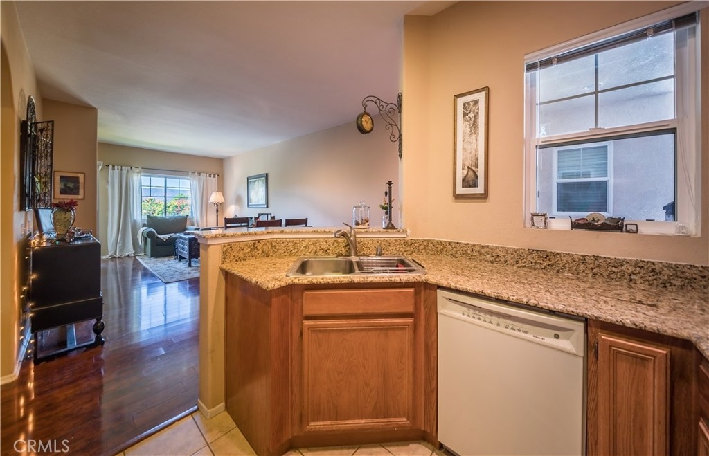 SO CUTE AND CHARMING! HAS DEN FOR OFFICE OR 3RD BEDROOM! REASONABLE HOA! This ADORABLE condo has been upgraded throughout. Elegant granite countertops distinguish the kitchen and BEAUTIFUL hardwood flooring set this home apart from the competition. Large dual pane windows and sliding glass door let in lots of natural light. Attached covered patio is your own private oasis with gorgeous mountain views. HOA includes a resort-style pool and spa area with covered seating and BBQ grills. Small gym on-site as well for a quick morning work out. This particular unit is situated in a very desirable location within the community that you have to see to believe. Includes detached one car garage. Don't wait long in this competitive price range, schedule an exclusive showing today!