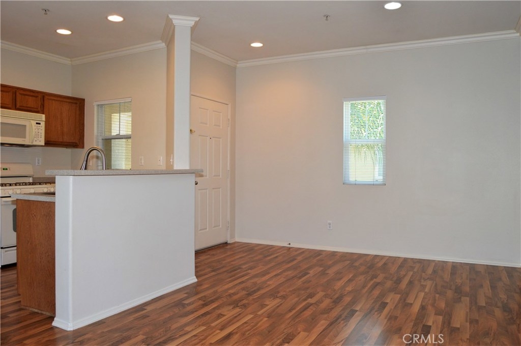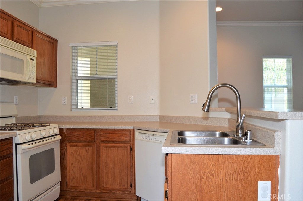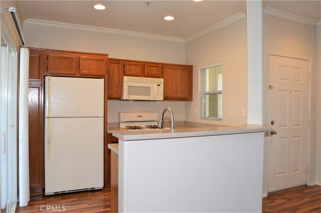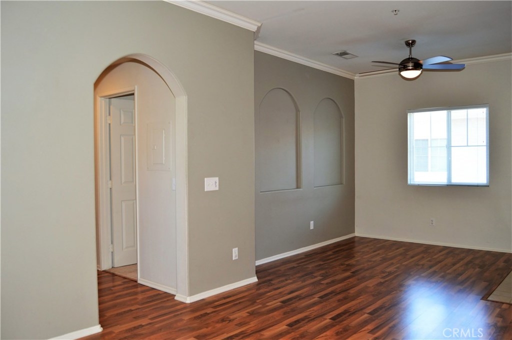 Welcome Home to 26444 Arboretum Way, Unit 2107 in Murrieta! This 2-bedroom condo (yes, the den is enclosed and has a closet!) is located in the prestigious gated community of Verona which is conveniently located near the 15 and 215 freeways, shopping, dining, parks, entertainment, wineries, & highly-rated schools. The open floor plan offers flexible living space options with stylish wood laminate flooring, crown moulding, a cozy gas fireplace, ceiling fans, neutral paint, and natural light to appeal to all tastes. The well-appointed kitchen offers a raised bar, stainless steel double sinks, all appliances included (yay!), and is open to the great room and covered balcony/patio for al fresco dining. A nice-sized main bedroom with walk-in closet, a 2nd bedroom (perfect for a home office or nursery), a full bath, and an indoor laundry room with great storage and stackable washer/dryer included all await you past the arched entry to the hallway. This 2nd floor unit sits above garages (no neighbors below you) and has a private 1-car garage in the row below it. New water heater in 2018. Affordable HOA includes the following amenities for your enjoyment: gated entry, pool, spa, clubhouse, BBQ grills, gym, trash, and beautifully maintained grounds. Please click the virtual tour links to virtually tour this home room by room from the comfort of your couch, then grab your agent to make it yours! Stop paying rent and start enjoying all that Murrieta has to offer today! You deserve this!