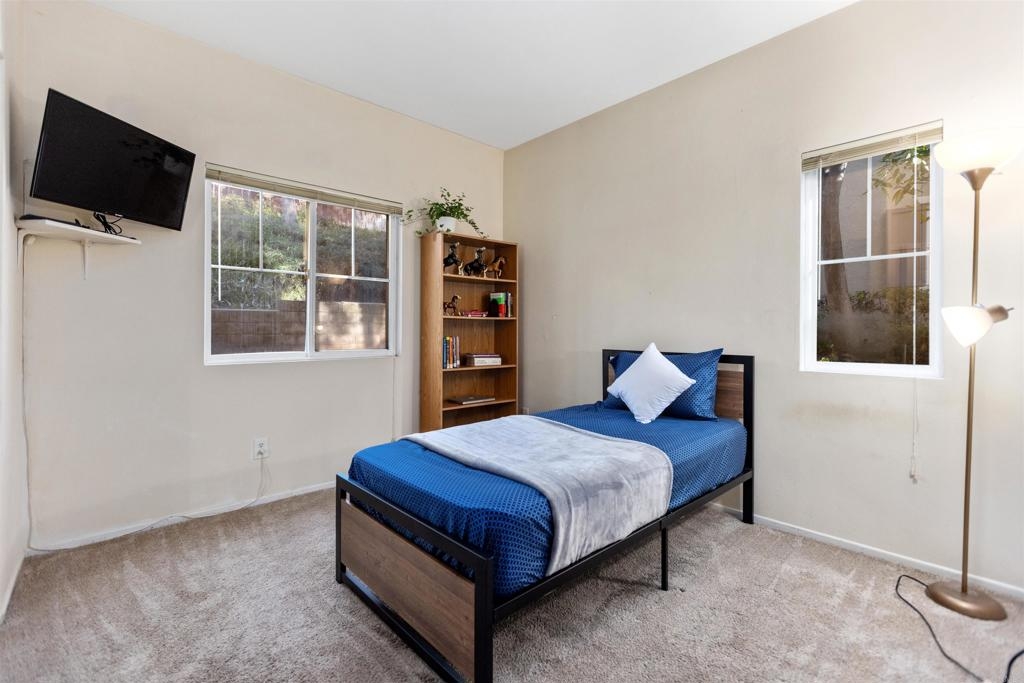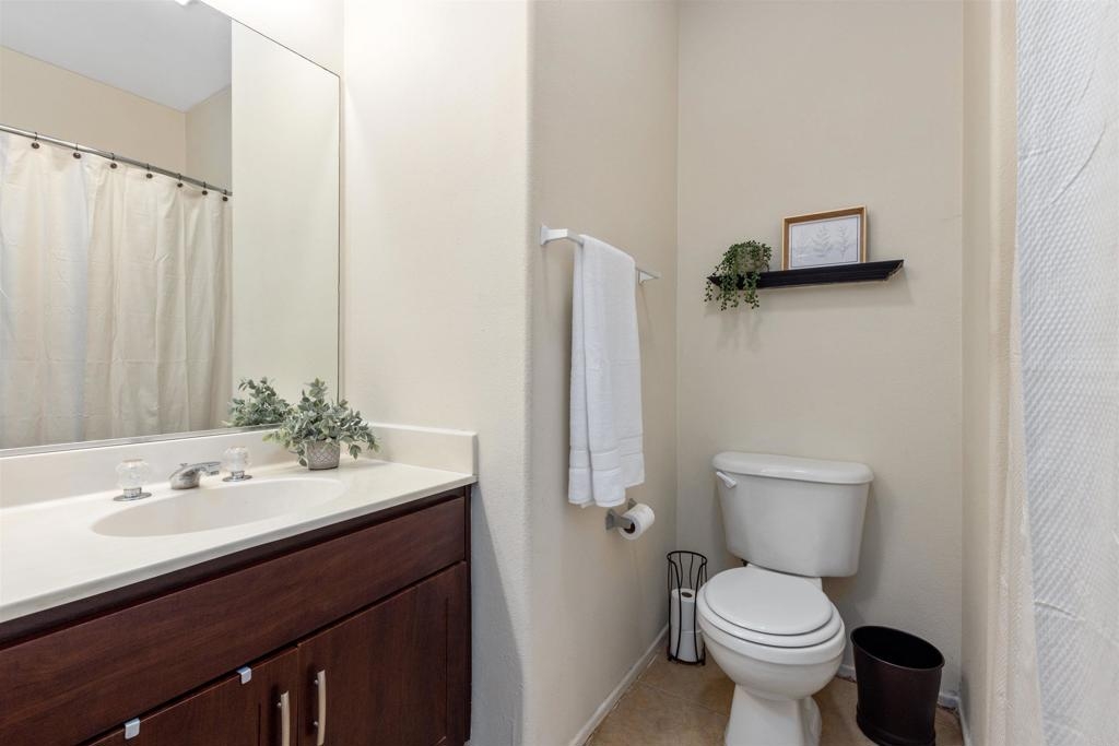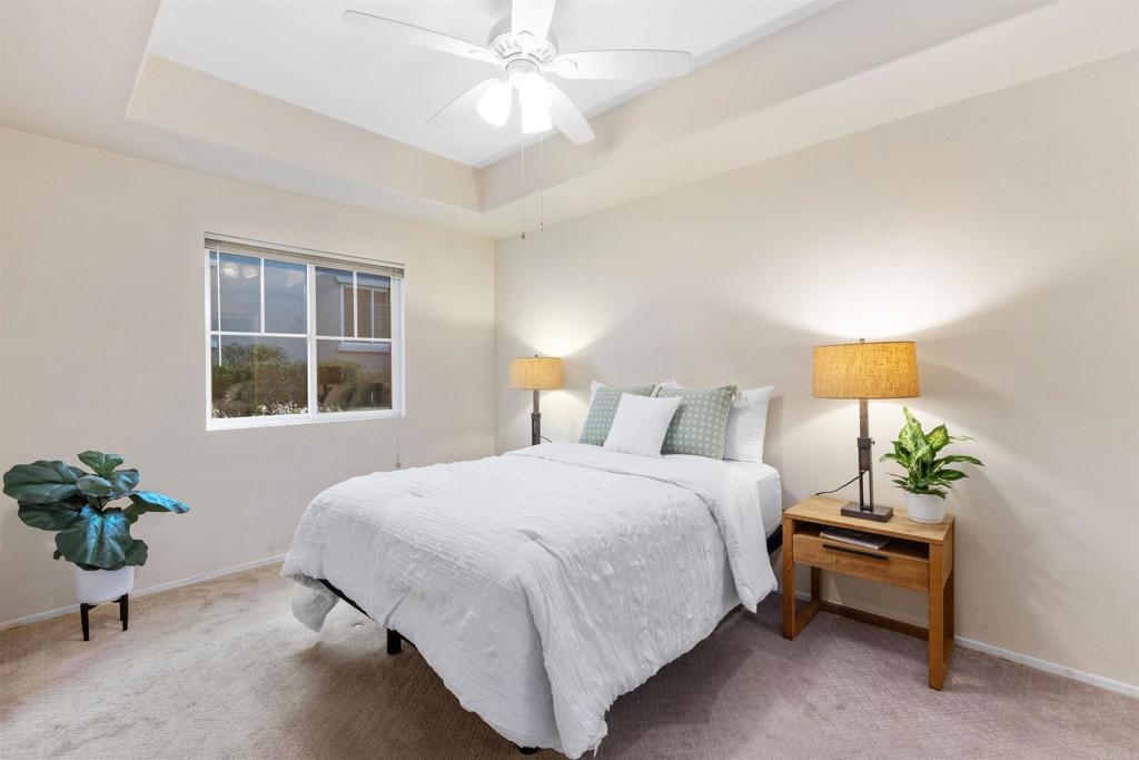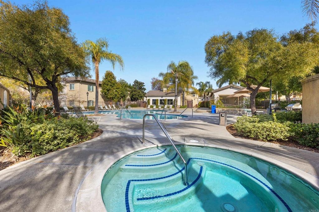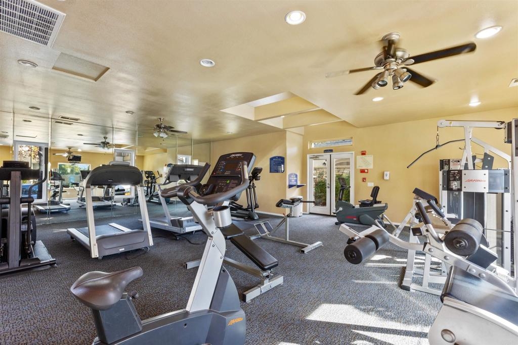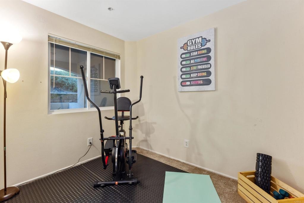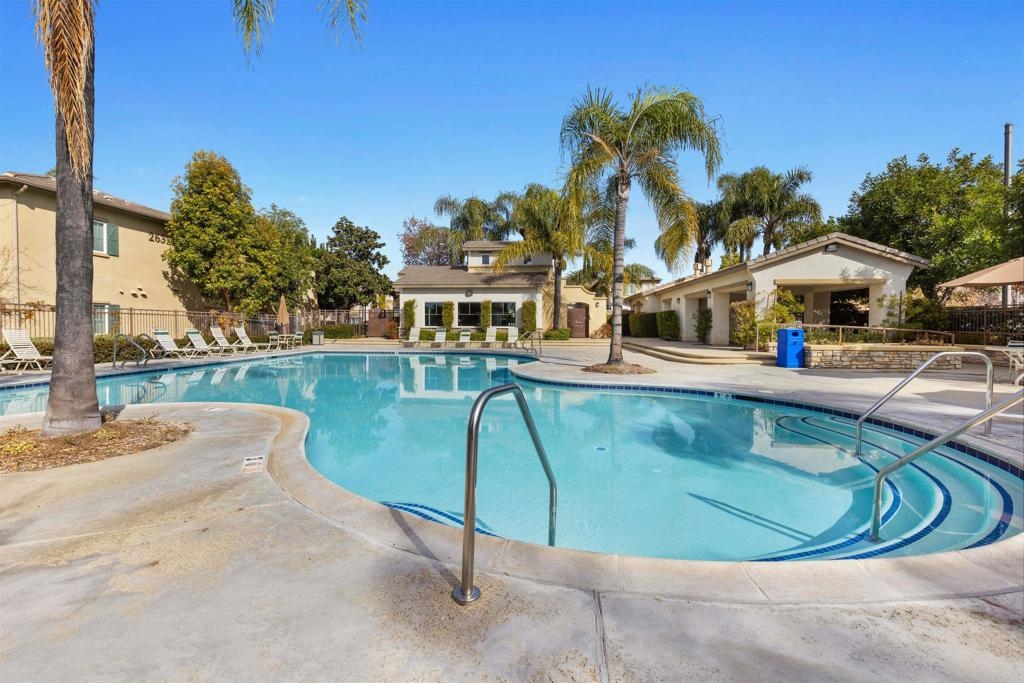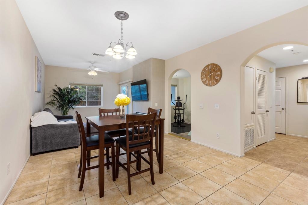 Discover modern luxury living in this spacious two-bedroom, two-bathroom lower-level condo within the gated Verona community. Tall ceilings create an inviting atmosphere, with a combined and cozy dining and living room. The kitchen boasts ample countertops and stainless steel appliances. An indoor stackable washer and dryer provide convenience, and there's a one-car garage for secure parking. A versatile small den offers flexibility, and a private patio is perfect for relaxation. The primary bedroom features a large bathroom, and the secondary bedroom is well-sized, both near the second bathroom. Enjoy community amenities, including a pool, spa, and gym, all in a secure, gated setting.