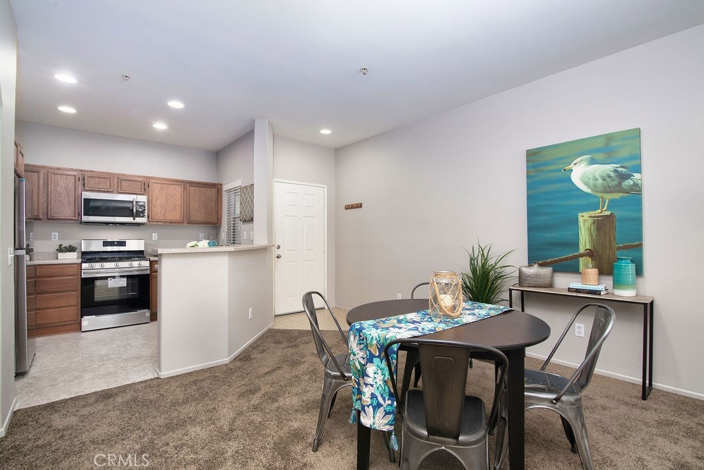 From the moment you arrive, you will absolutely love this beautiful, single story, lower level condo in the Lennar-built Verona community of Murrieta. The living room, dining area, and kitchen flow seamlessly, making entertaining family and friends a breeze. The kitchen is equipped with all new, stainless steel appliances. The laundry closet makes chore time easy. The entire home has been upgraded with fresh paint and carpeting, new blinds and closet doors, and refreshed bathrooms. The covered balcony will allow you to enjoy fresh air any time of year and offers ample privacy. Parking is never an issue with the detached, one-car garage. There is also a gated lot of unregulated spaces, so your visitors will have plenty of space to park. Ideal location close to the award-winning schools of Murrieta, and the 215 and 15 freeways. The community offers a trolley to take you to nearby Harveston in Temecula with amenities open to the public, and the Temecula mall. Association amenities include a pool, spa, poolhouse, barbecue area, covered outdoor recreation area, and 24-hour security. Hurry! Homes in this excellent area do not last! Take a virtual tour: https://my.matterport.com/show/?m=Ns5kvdaDh3z&brand=0