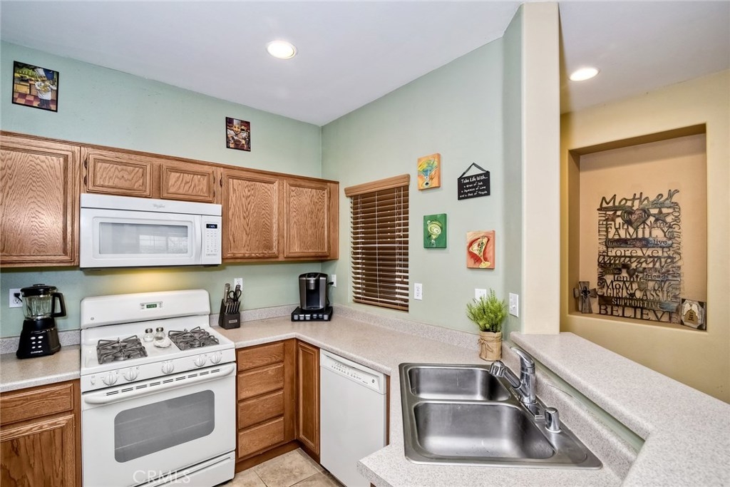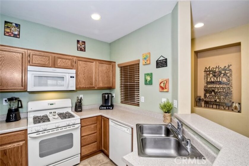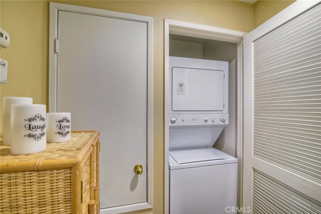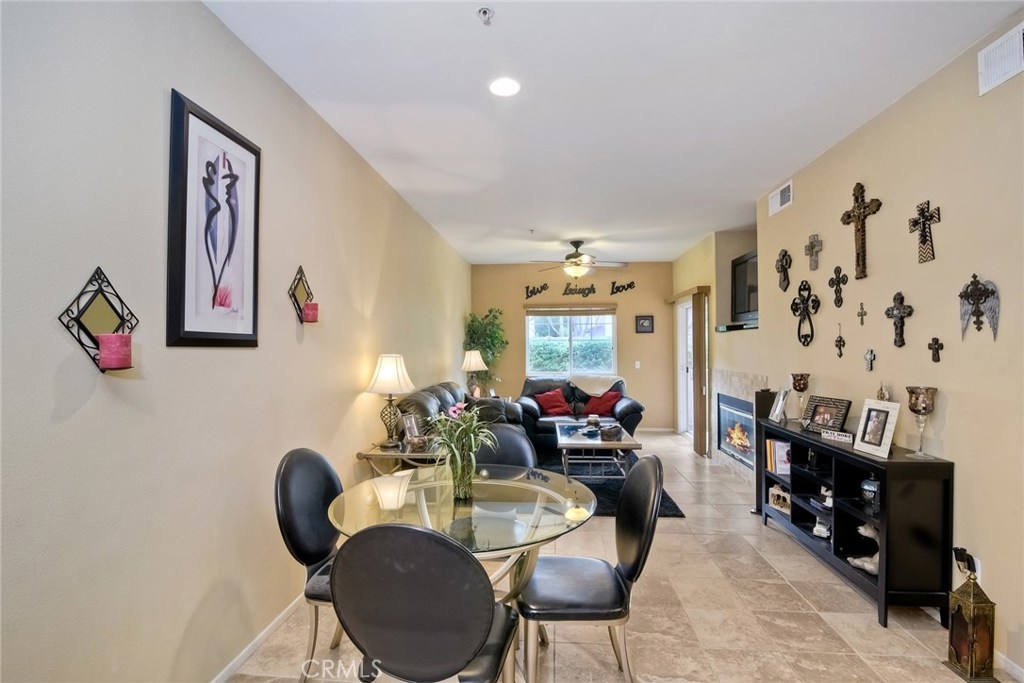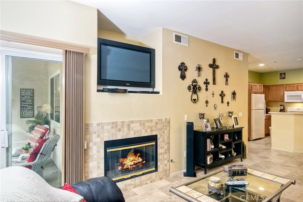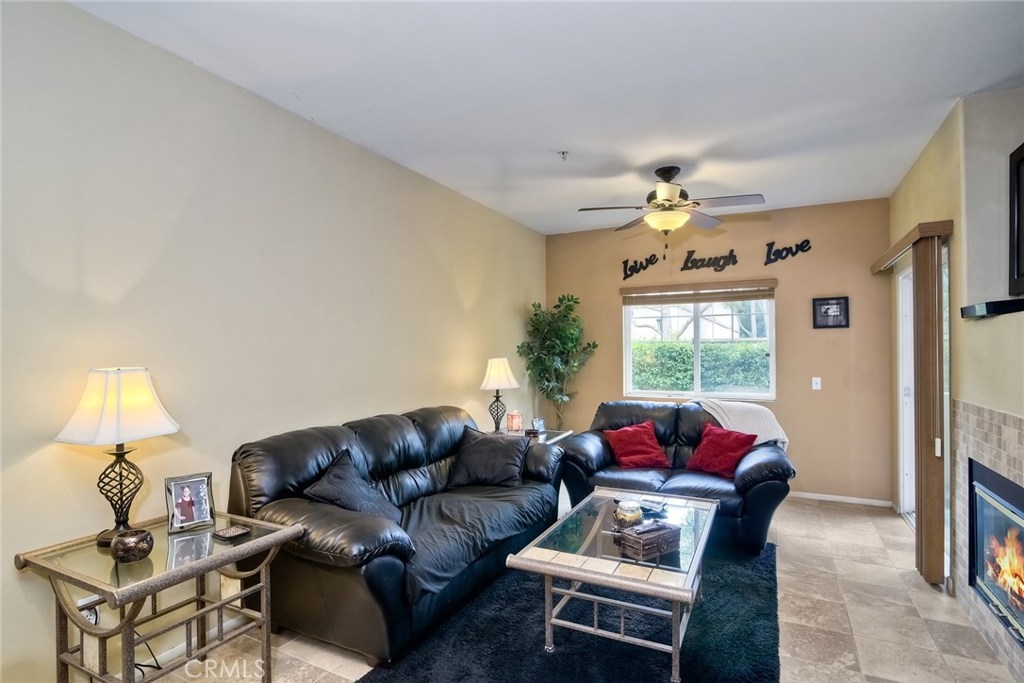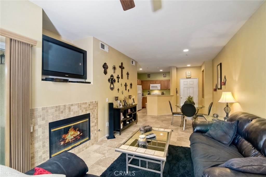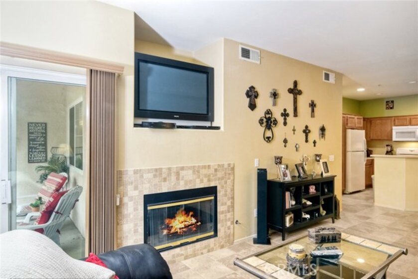 Charming one bedroom, one bath condo on the first floor in the VERONA community. This unit is tucked at the back of the complex with a spacious & private patio! This patio is right off the living room overlooking the greenbelt. As you enter, the kitchen is open and spacious. The living room features a cozy fireplace, tile throughout and adjacent dining area. IN-UNIT LAUNDRY is always a bonus! Washer/dryer included. The bedroom is spacious with a full bath directly across the hall. Detached one car garage with storage is conveniently located steps away from the unit with additional parking right in front. The complex features a pool, spa, exercise room, clubhouse, BBQ area and gated entry! Fantastic opportunity for the first time buyer or investor.