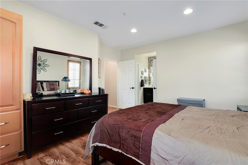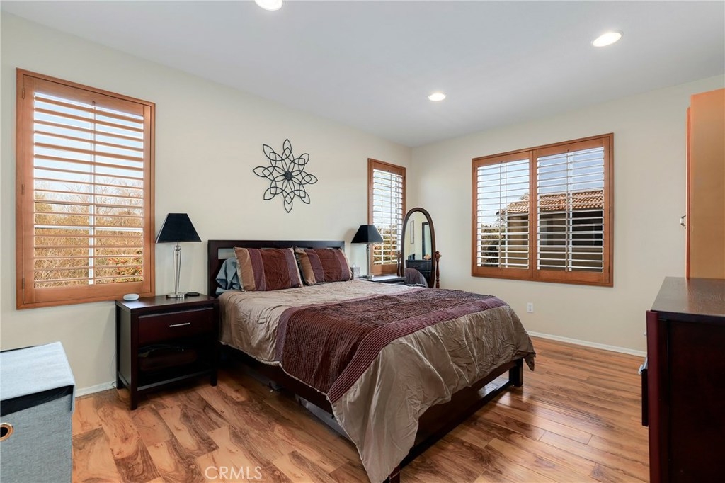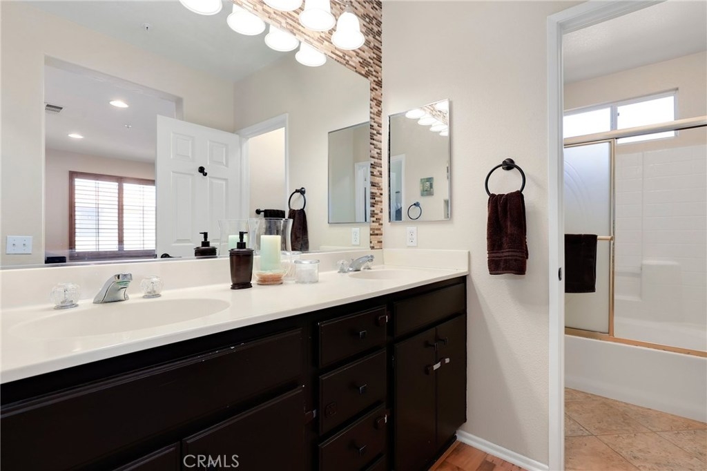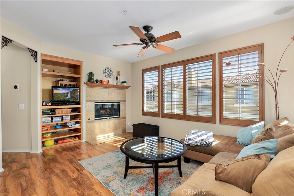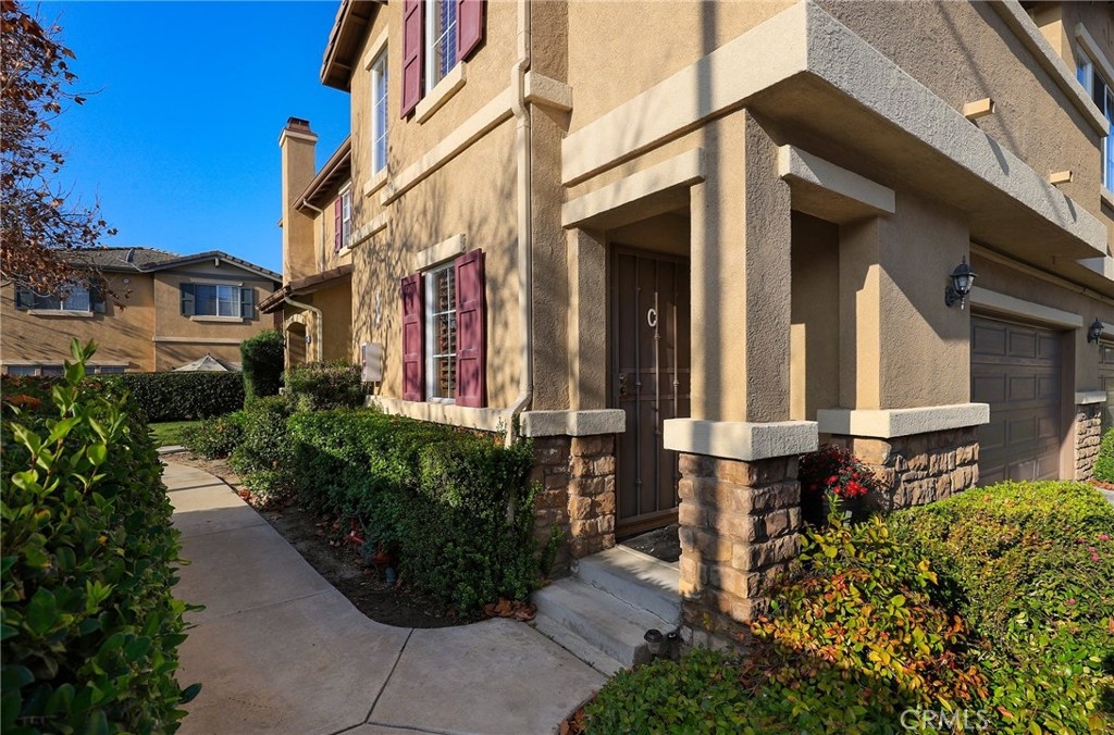 This beautiful condo is located in the desirable Old School House featuring 1408 square feet and 3 bedrooms! Soft neutral colors, shutters, and wood flooring throughout add to the elegance of this immaculate home’s highly livable floor plan. The kitchen is well-appointed with tile counters, fresh wood cabinets, bar space, and the center of the home. The family room with a cozy fireplace flows seamlessly from the kitchen and opens up to the convenient eating area. The balcony is just an extension of the home and offers sweeping views of the area. Featuring 3 spacious bedrooms including the master suite, a walk-in closet complete with double sinks, and a glass-encased shower. The secondary bedrooms are generously sized, and ample closet space, and share a full hall bathroom and ample storage. There is also a functional niche ready for a media/office center. 2-car attached garage. Residents of The Old School House Villas enjoy luxury amenities including a gated community with a pool and spa where you can enjoy BBQs and summer fun. Located conveniently near the 15 and 215 freeways, the area offers an abundance of outdoor activities, shopping, and restaurants.