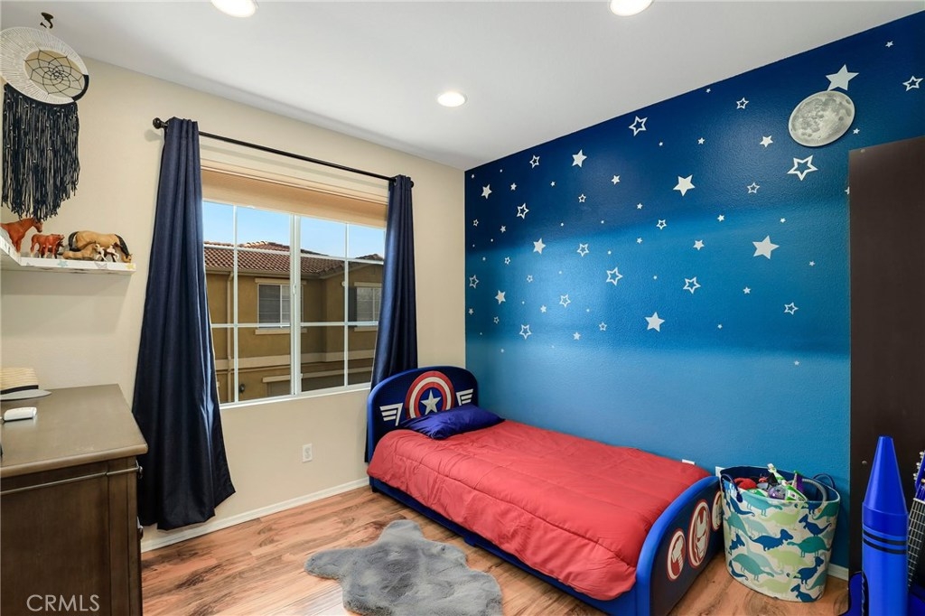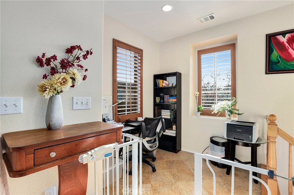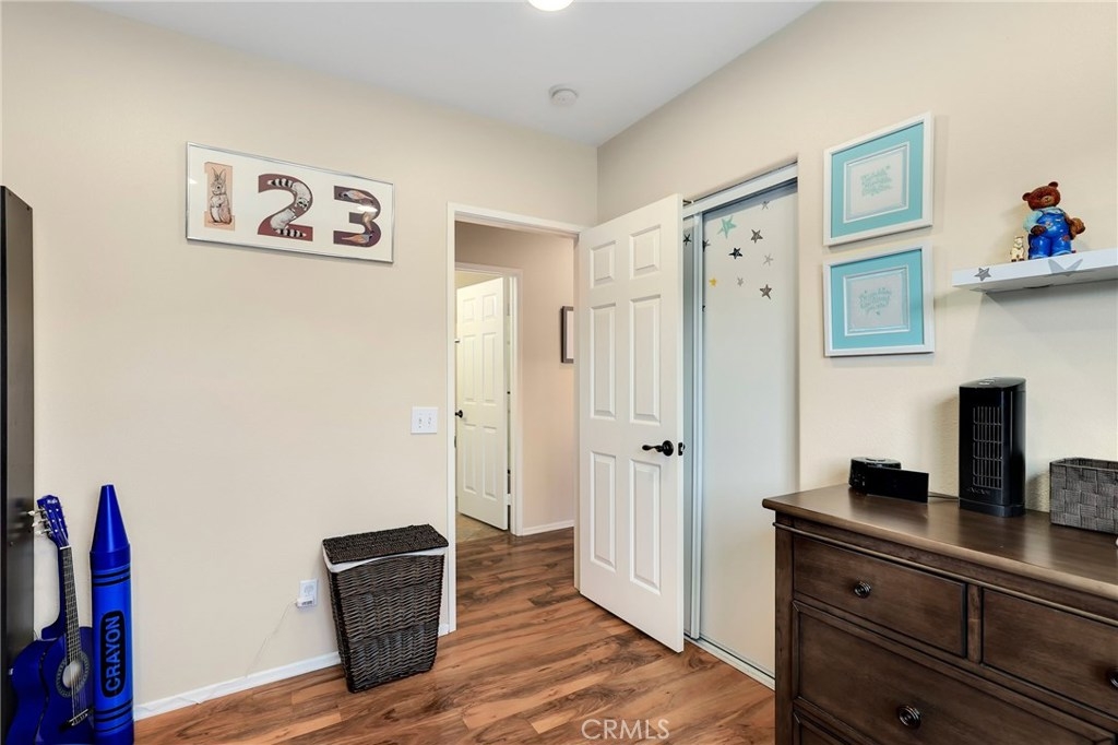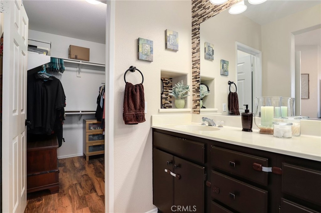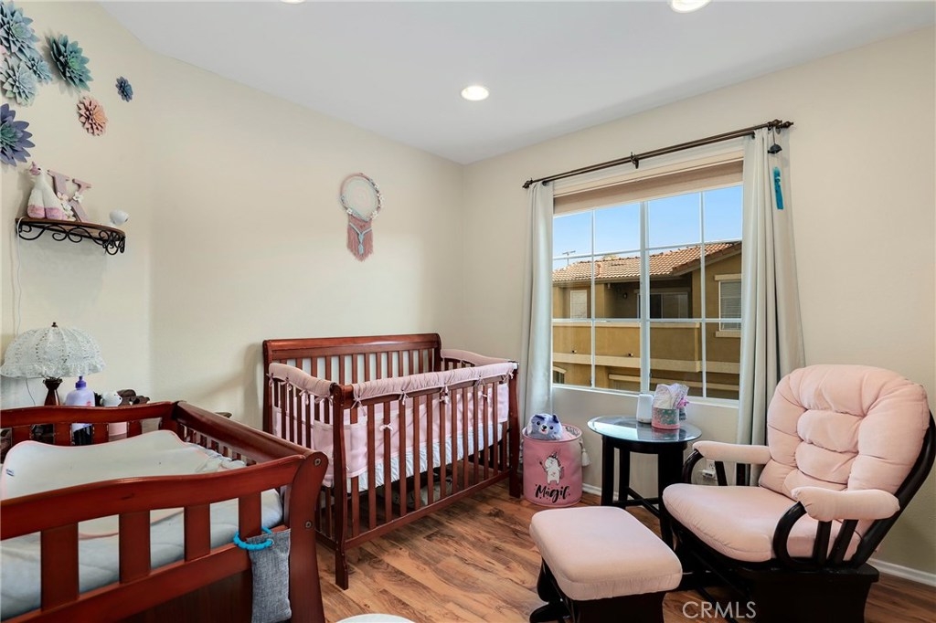 This beautiful condo is located in the desirable Old School House featuring 1408 square feet and 3 bedrooms! Soft neutral colors, shutters, and wood flooring throughout add to the elegance of this immaculate home’s highly livable floor plan. The kitchen is well-appointed with tile counters, fresh wood cabinets, bar space, and the center of the home. The family room with a cozy fireplace flows seamlessly from the kitchen and opens up to the convenient eating area. The balcony is just an extension of the home and offers sweeping views of the area. Featuring 3 spacious bedrooms including the master suite, a walk-in closet complete with double sinks, and a glass-encased shower. The secondary bedrooms are generously sized, and ample closet space, and share a full hall bathroom and ample storage. There is also a functional niche ready for a media/office center. 2-car attached garage. Residents of The Old School House Villas enjoy luxury amenities including a gated community with a pool and spa where you can enjoy BBQs and summer fun. Located conveniently near the 15 and 215 freeways, the area offers an abundance of outdoor activities, shopping, and restaurants.
