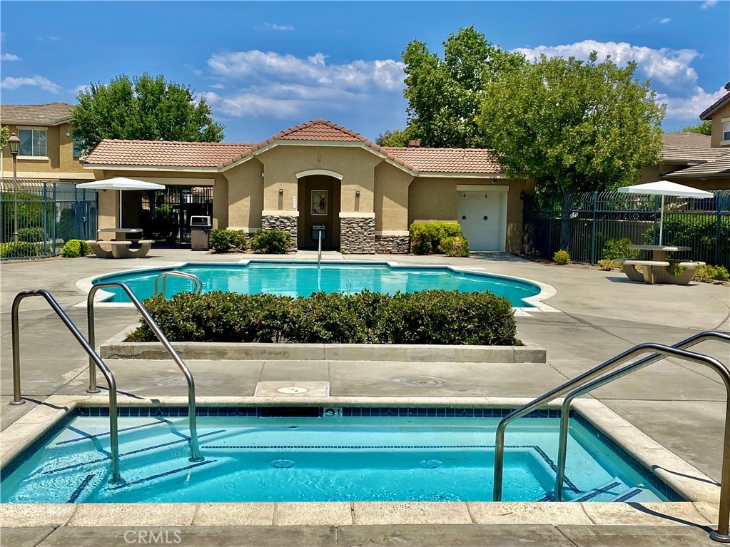Welcome to Villas @ Old School House, Gated Community, great amenities include Swimming Pool & Spa. End Unit Two Story Townhouse with Direct Access Two Car Garage and Oversized Patio. Impressive Cathedral Ceilings in the Entry Lead to Spacious Living Room with Fireplace. Kitchen Includes Breakfast Bar and Large Dining Area, it Opens to Living Room. Downstairs also includes additional Room, which could be den/office or a small downstairs bedroom. Full Size Laundry Room Includes Sink and Storage Cabinets. Master Suite includes Large Walk-In Closet. Two additional bedrooms are also located upstairs along with another niche area for a work space/office. Close Proximity to Freeways, I-15 & I-215, Shopping, Dining and only minutes from Temecula Wine Country and Historic Old Town Murrieta and Temecula.