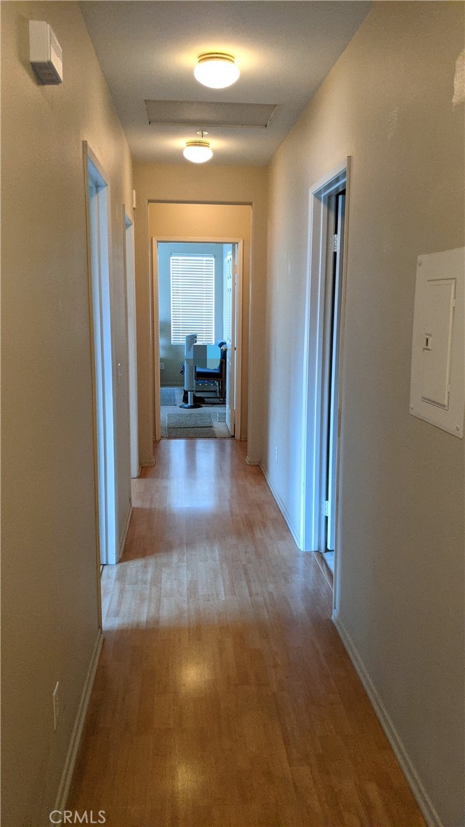 This is a very nice 3 bedroom, 2 bath upstairs unit with attached 2 car garage in the Villas at Old School House community. As you enter the home, there is access to the attached two car garage and you come up the stairs to an open living / dining / kitchen area with slider to the balcony. There is laminate flooring through the common areas of the home with carpet in the bedrooms. A fireplace provides nice ambiance to the living room. The master bedroom is good sized and has a walk-in closet. Indoor laundry room has hook ups for a full size washer and gas dryer and also has a sink! This is a great location close to shopping, schools and access to the 215 and 15 freeways. This community has a pool and is gated. Don't miss out on your opportunity to live in this fantastic condo!