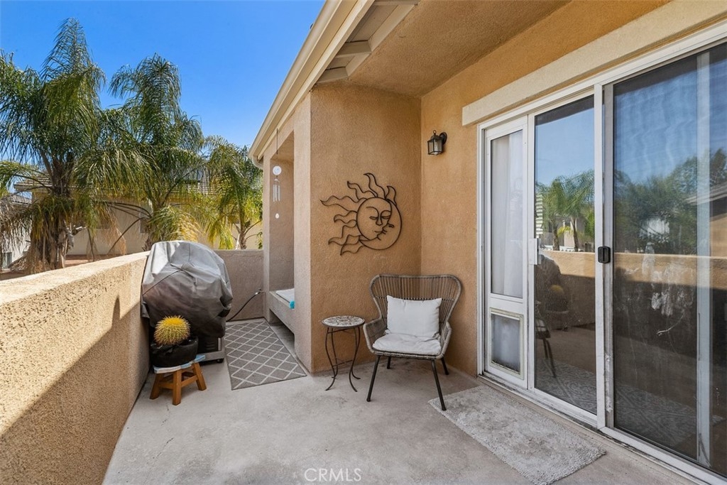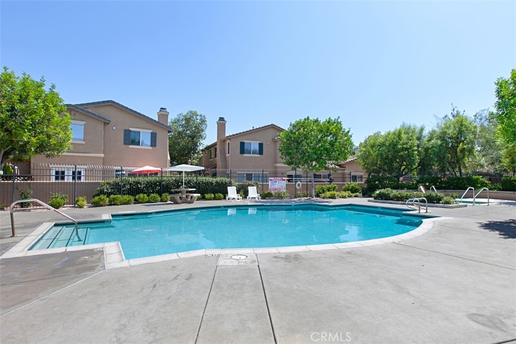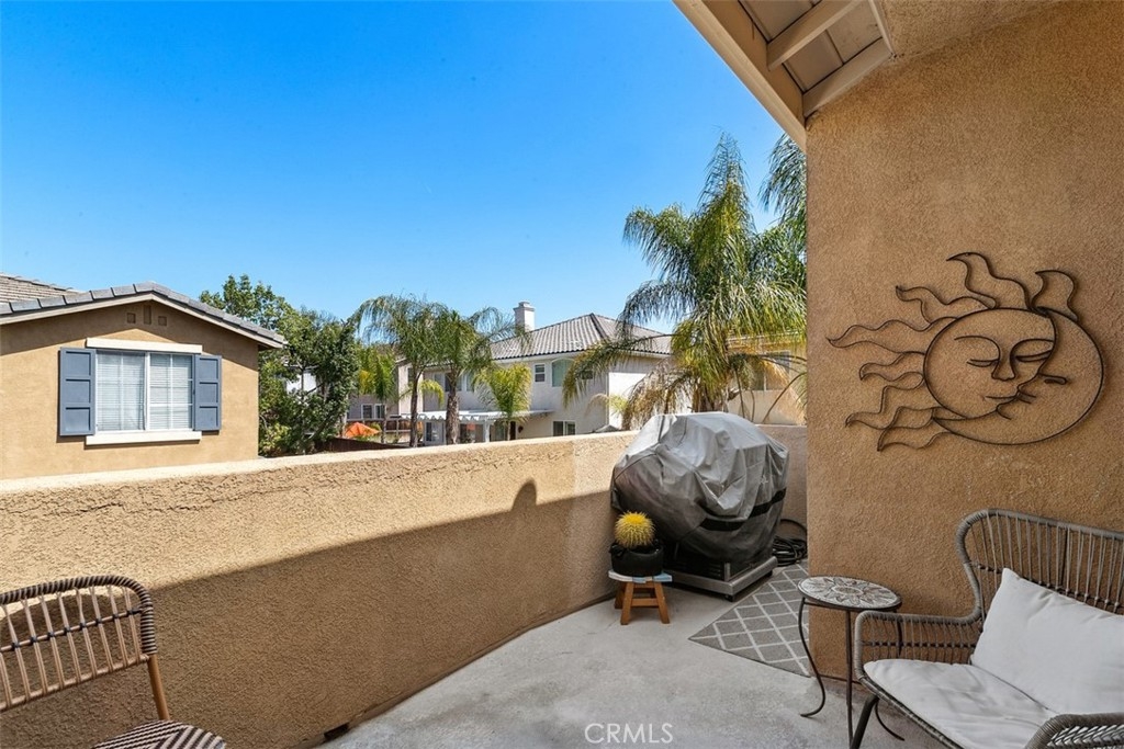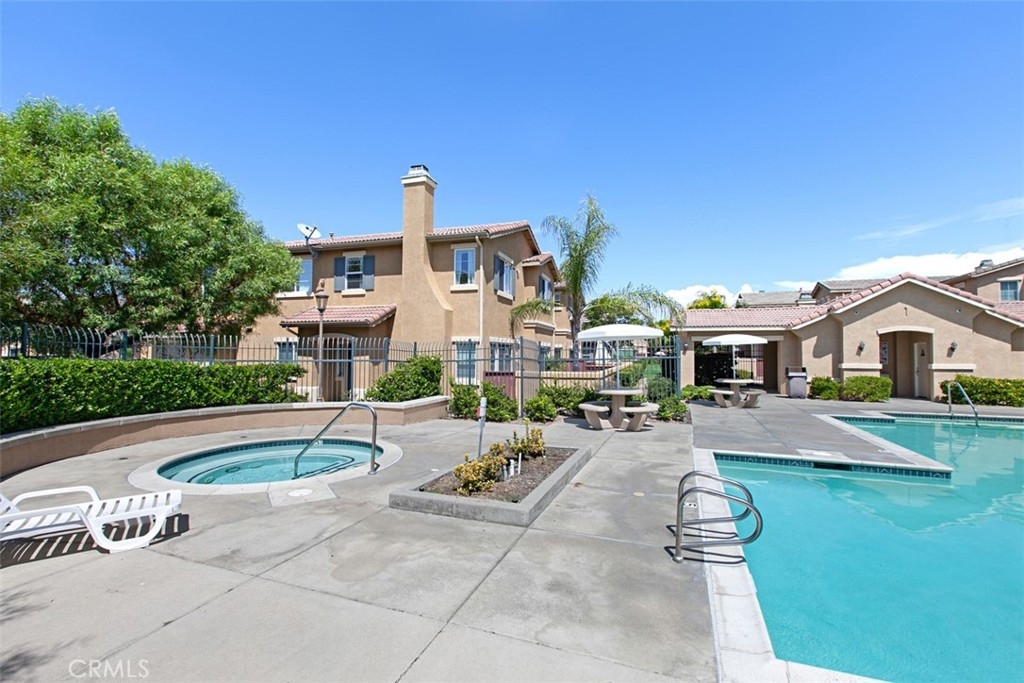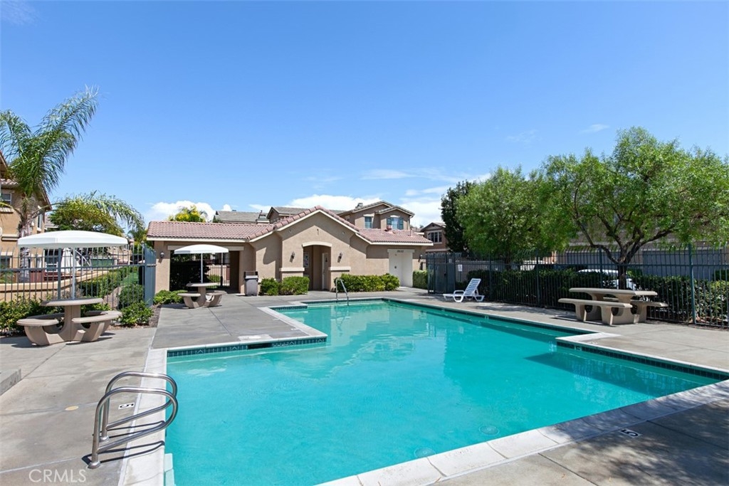 New to the market and located in the private gated community of Villas at Old School House, this 3 bedroom 2 bath end unit condo home is priced to sell FAST. Off the entry is direct access to your 2 car garage, along with a stairway leading up to your main living space (which is all on one level). The light & bright open floor plan offers ample dual pane windows w/ plantation shutters, along with neutral paint colors & wood laminate / tile flooring in all common space. The gourmet kitchen boasts newly painted cabinetry, tile countertops & stainless steel appliances plus a breakfast bar to go along with a separate Dining Room area which has a sliding door, leading to your oversized balcony / outdoor terrace. The kitchen also overlooks the large family room complete w/ plantation shutters, a tiled fireplace & built in shelving which would be perfect for a media niche. Both secondary bedrooms share a hall bath, while the oversized master bedroom comes complete w/ an en-suite bath offering a dual vanity and walk in closet. The HOA is an incredibly reasonable $225/month, for which you get a community pool & spa + the privacy of being behind gates. This home will qualify for all types of financing including VA, and will be gone in the blink of an eye.