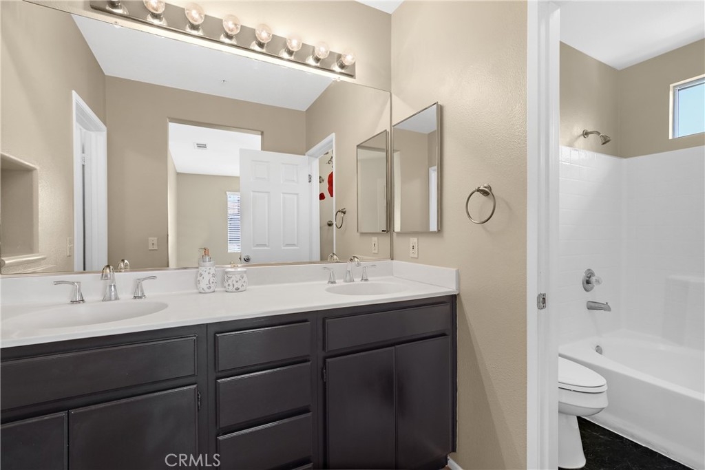 Gorgeous Murrieta Condo with perfect layout, beaming with natural light at the gated community of Villas at Old School House! This 3 Bedroom 2 Bathroom unit has it all and more! The family room features a cozy fireplace and media niche and flows into the kitchen which is well laid out and shines with granite countertops, ebony-stained wood cabinetry, designer backsplash and a spacious center island with bar seating. Down the Hallway you will find 2 spacious bedrooms and the primary suite that is outfitted with a large bathroom that includes a large bathtub and shower and a walk-in closet! Nice upstairs oversized laundry room and direct access to a private 2-car garage. Home is also ideally located to the community pool and spa, accessed by a quick walk through landscaped pathways. Easily accessible from the freeway, close to award winning schools, restaurants and shopping. Make the move today! *professional photos to be uploaded soon