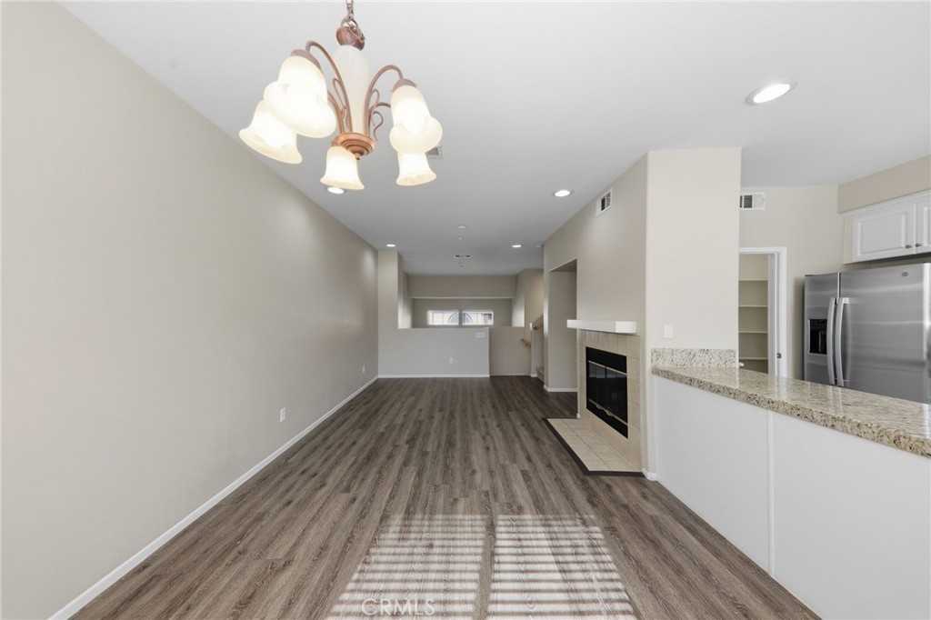Spacious 3-story condo offering 3 bedrooms and 3 bathrooms with a thoughtfully designed layout. The inviting living room features a fireplace and accent lighting, while the kitchen includes a breakfast bar ideal for everyday living and entertaining. The primary bathroom boasts a double vanity with a separate tub and shower, creating a comfortable private retreat.