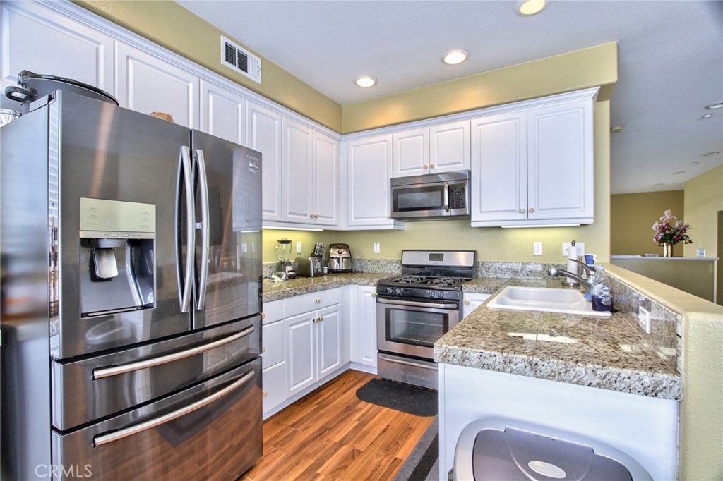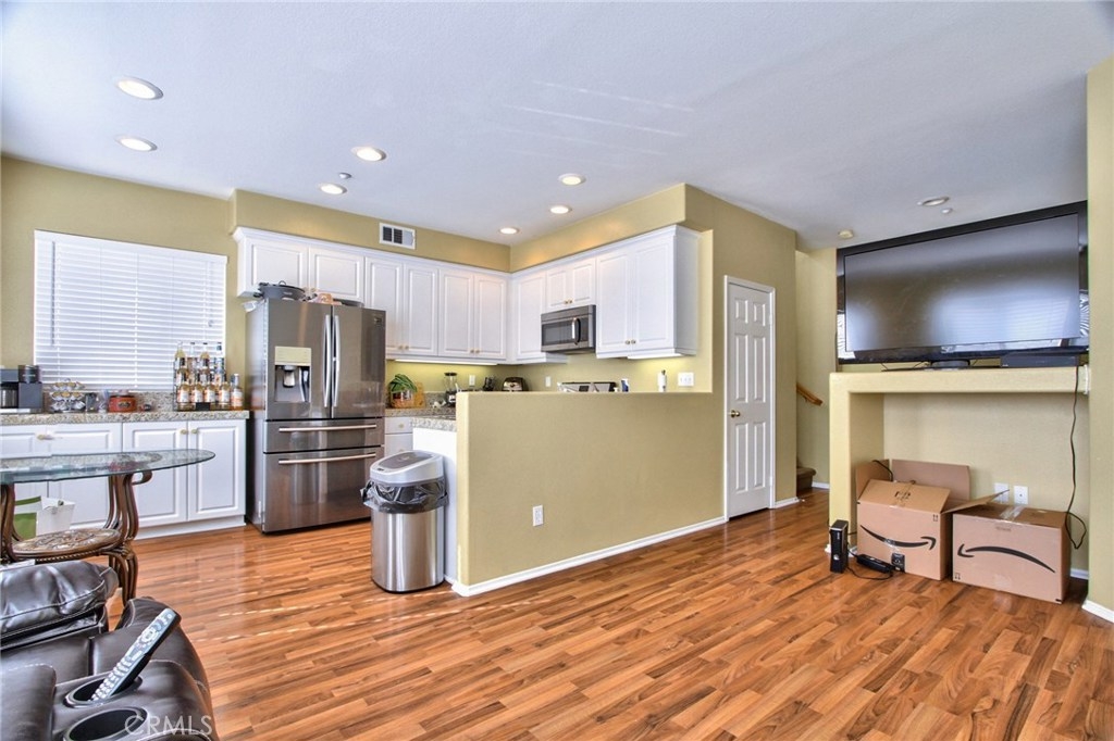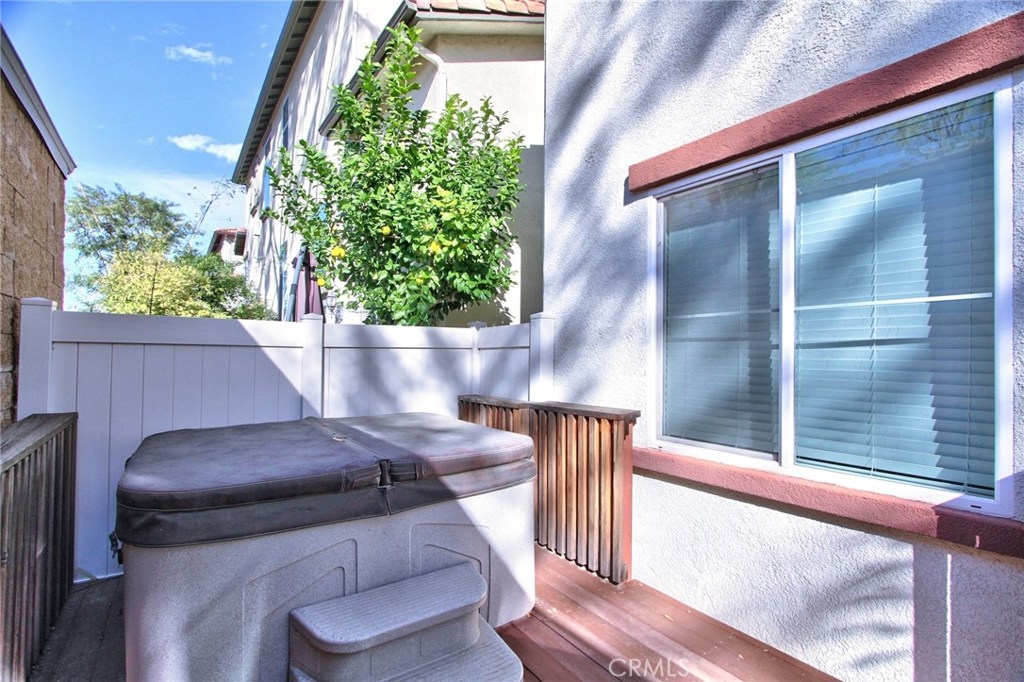 Welcome home to this gorgeous condo, located in the wonderful gated community of Willow Haven. This 1976 sq. ft., 3 bedroom, 3.5 bath unit is truly special with a tri-level, open floorplan and soaring ceilings. A formal living room invites you into the first level of the home, which also features an office/den that can be easily converted to a 4th-bedroom, plus a convenient full bathroom. There's plenty of energy efficient windows on 3-sides of this unit, which makes the overall feel very light and bright. This rare unit includes French doors that lead out to a large private side yard that has its own spa! The next set of steps takes you to the formal dining area and entrance to the garage. The next level includes the family room with a beautiful fireplace, a spacious kitchen featuring granite counters and a half-bath. The top floor features all 3-bedrooms, two full-bathrooms and the laundry room. The primary bedroom is huge and the bathroom is complete with a separate tub and shower, plus two closets. This well maintained community features a resort style pool & spa, and a play area for the kids. Enjoy quick access to the 215 fwy, while being only minutes from shopping, hospitals and Mt. San Jacinto Community College.