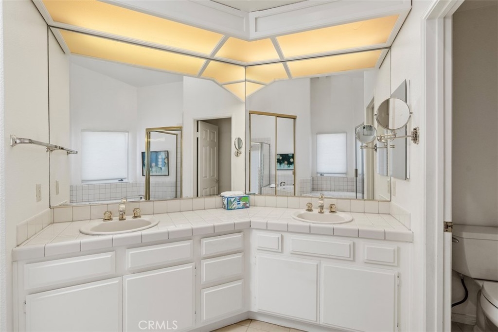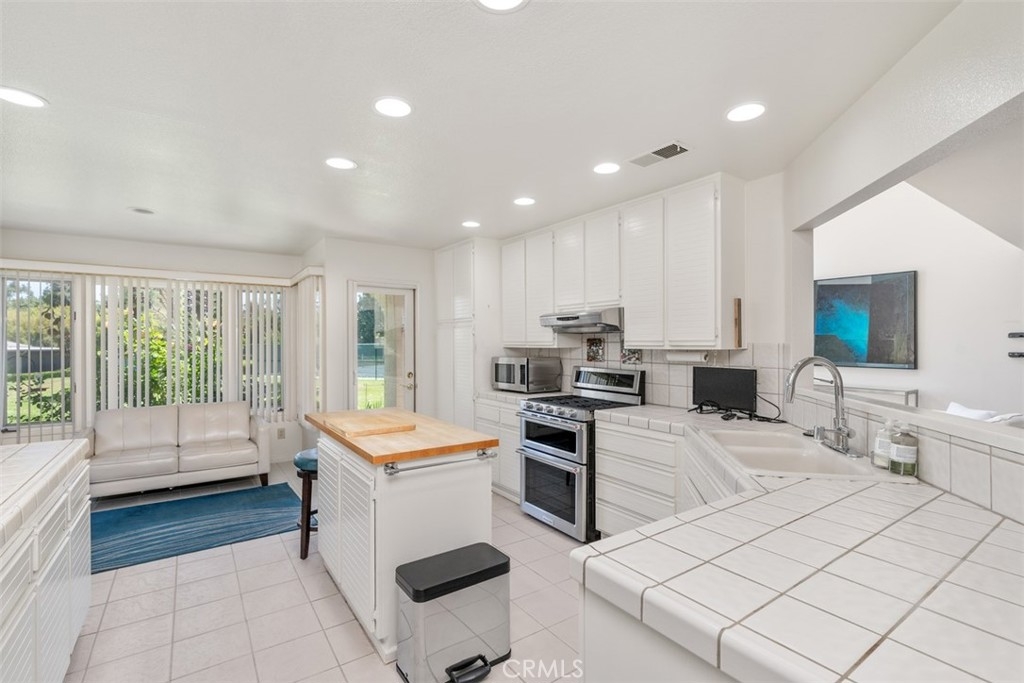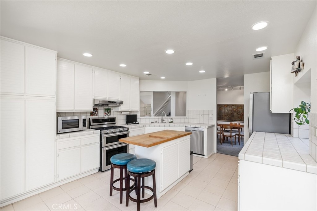 Lovely split level unit backing the greenbelt with views of the pool, tennis and dog park. Open landing area with powder room and garage access. Down stairs to main living area’s with Living room, Dining Room, Kitchen with center island and Kitchen nook. Kitchen with butcher block center island, newer gas range and dishwasher. Living room with wet bar, gas log fireplace and doors onto the patio. Upstairs features landing area with built in office area, primary suite with walk in closet, large tub, walk in shower, double sinks and separate toilet closet. Secondary suite with balcony, bathroom with tub/shower combo. Beautiful setting for entertaining or just relaxing.