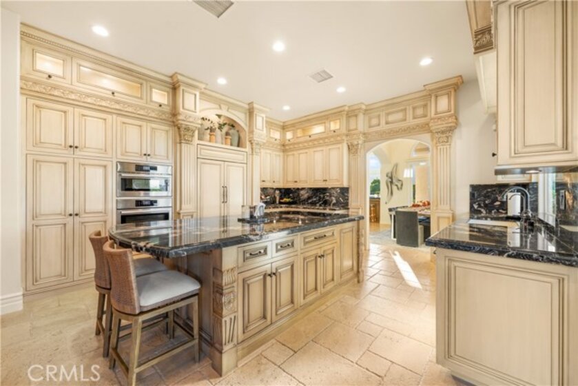 Elegant Single-Story Home in Bear Creek~Welcome to 22901 Saint Annes Court, located in the prestigious guard-gated community of Bear Creek. This beautifully upgraded single-story residence offers 3 bedrooms, 3.5 bathrooms, and a floor plan designed for both comfort and entertaining. Step inside to discover an extensively upgraded chef’s kitchen, featuring stainless steel Bosch appliances, a custom-panel built-in Sub-Zero refrigerator, high-end custom cabinetry with built-in spice racks, striking black granite countertops and an oversized center island—perfect for hosting family and friends. The living room boasts a stylish entertaining bar area, while a separate dining room provides a refined space for gatherings. The home’s thoughtful design continues outdoors, where you’ll find a sparkling pool and spa and breathtaking views of the La Cresta hillside—an ideal backdrop for relaxation or entertaining. Additional features include a 2-car garage plus a golf cart garage, offering convenience for golfers and extra storage needs. Bear Creek residents enjoy a private, secure lifestyle close to shopping, freeways, and award-winning schools. Just minutes away, the Santa Rosa Plateau Ecological Reserve offers miles of scenic trails for horseback riding, mountain biking, and hiking, with much of the land preserved for protected wildlife. This home seamlessly blends luxury, comfort, and natural beauty—an exceptional opportunity to live in one of Murrieta’s most coveted communities.