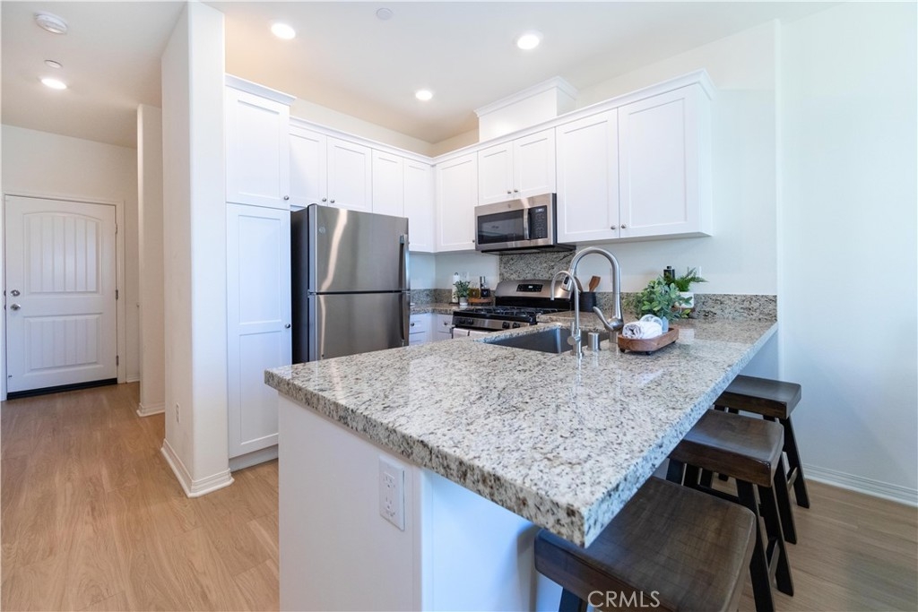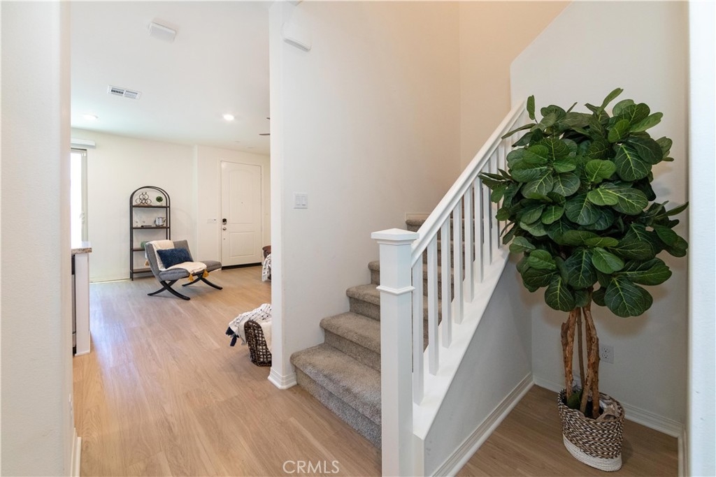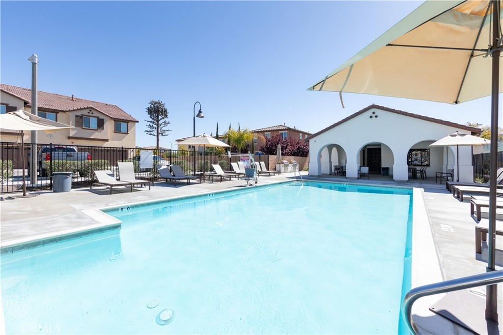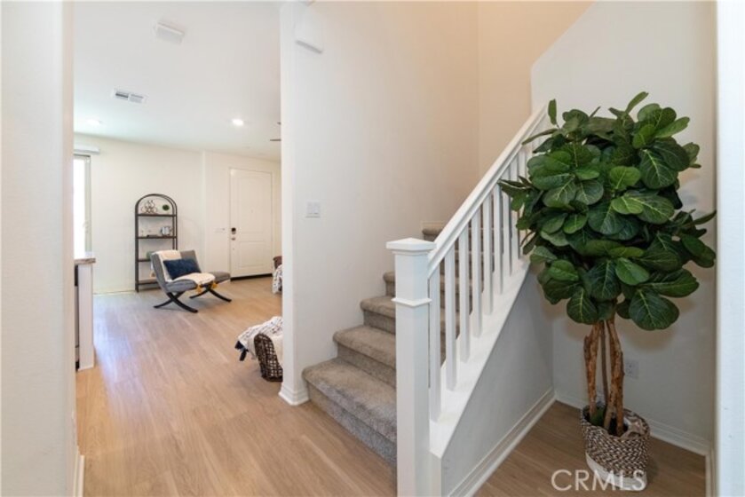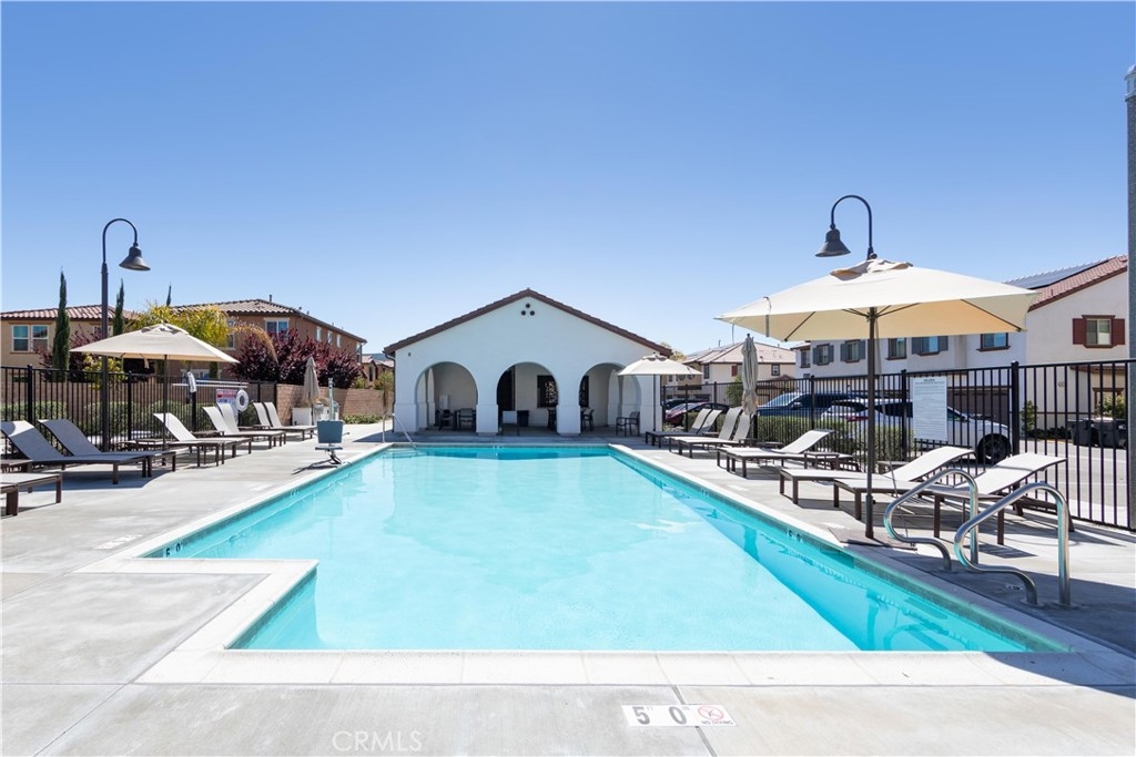Welcome to this stunning 3 bedroom, 2.5 bathroom condo located in the desirable Solera community of Murrieta. This home features an open and airy floor plan, with neutral colors, that enhances the flow. The kitchen boasts granite countertops, stainless steel appliances, and plenty of cabinet space. The soft water system and water filter on the kitchen faucet provides a luxurious water experience inside and out. Leased solar panels, a whole house fan, and a tankless water heater enhance the energy efficiency. This is truly a smart home with technology that makes opening doors, the garage, and adjusting the thermostat simple from anywhere at the press of a button. All bedrooms are upstairs, including the primary, which boasts a spacious closet and a zen like bathroom. Washer, dryer, and refrigerator provided for your convenience. Front patio perfect for relaxing or entertaining with family and friends. The Solera community amenities include a pool, spa, clubhouse, barbecue area, park and much more. Conveniently located near schools, shopping, dining, and entertainment options. Don't miss out on this fantastic opportunity to own a beautiful condo in a great location. No need to wait for it to be built, it's ready to be your dream home today!