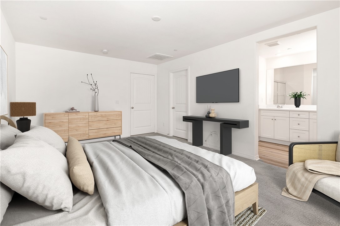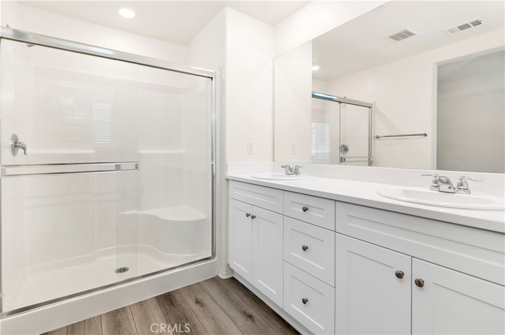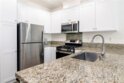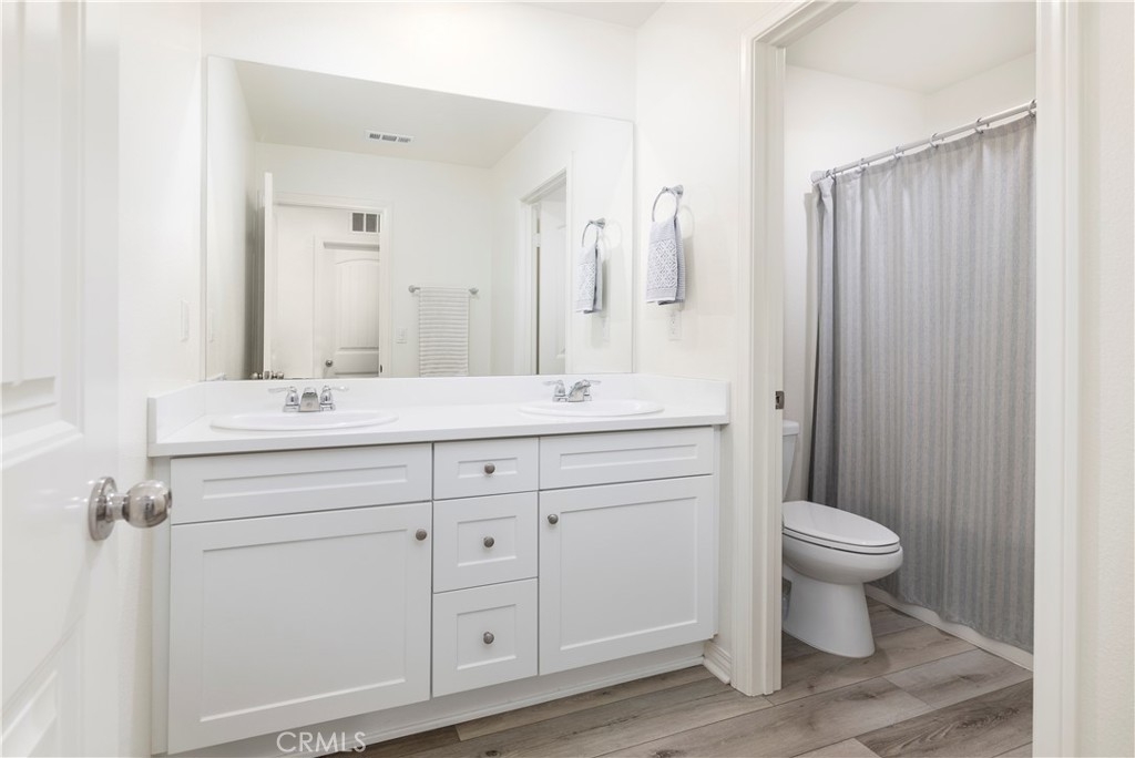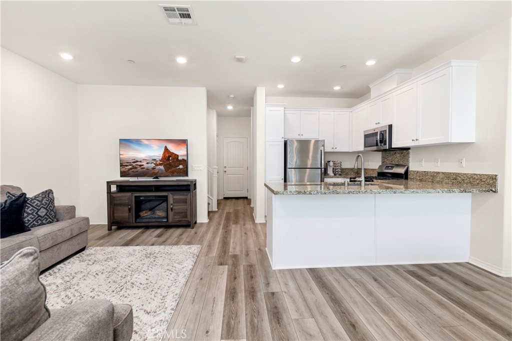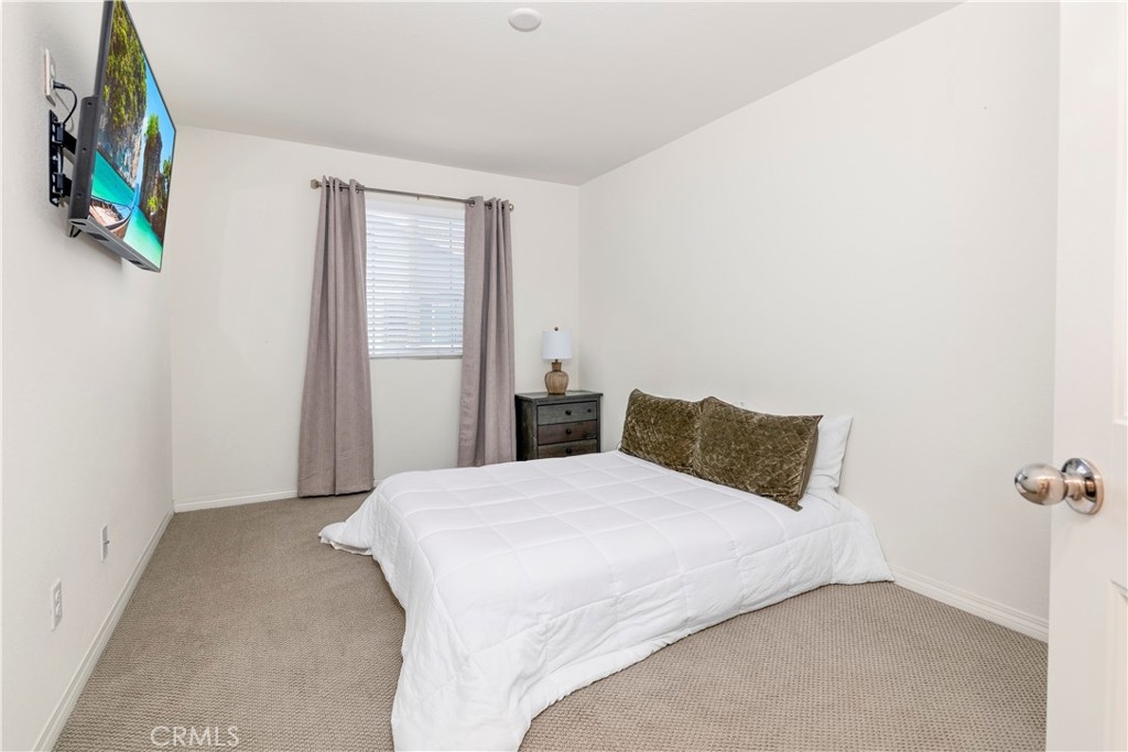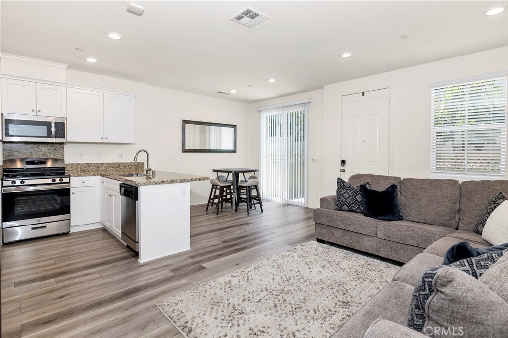 Stunning turnkey 1,466 sq ft condo at Solera by Lennar! This upgraded unit is move-in ready and bursting with contemporary functional style. Plenty of natural light opens up the downstairs great room, highlighting gorgeous new floors that flow throughout the first level. The sleek kitchen features granite countertops, crisp white cabinets, and stainless steel appliances, including a farmhouse sink, creating a space that's both, modern and practical. The attached two-car garage offers safety, avoiding street parking hassles. The first floor also offers a private front terrace with sliding doors where your family can spend relaxing afternoons. A large closet under the stairs gives plenty of storage space. Head upstairs to the master bedroom, which features a generously sized walk-in closet that maximizes the living area, 2 additional bedrooms plus one full bathroom, and a laundry room also found upstairs. This recently built and well-kept condo has features designed for contemporary living, including a tankless water heater, pre-wired internet throughout the house for seamless connectivity, and a keyless entry door lock for added security and convenience. Plus, the guest room boasts a designer's wall panel, offering a personalized style to your guest's stay. The Solera community house is just steps away from the unit. The gated clubhouse amenities include a sparkling pool, a soothing spa, a cooking, and a BBQ area with plenty of seating space – ideal for fun afternoons ideal to entertain family and friends. The community center offers even more opportunities to connect with your neighbors. This condo is equipped with solar panels, offering energy efficiency. This perfectly situated condo offers the best of both worlds – a modern lifestyle and a vibrant community. You'll be close to schools, freeways, restaurants, shopping centers, and family entertainment.