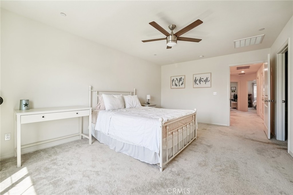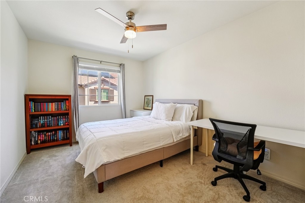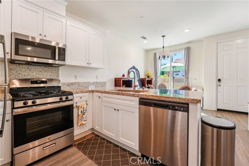 Like new home, Built in 2021, 3 bed/2.5 bath home located in the desirable Solera Community is ready to be made yours! The main floor is open and spacious with recessed lights, a modern chandelier over the dining area, lots of natural light, as well as a Quiet Cool System. The kitchen features stainless steel appliances, granite counters and backsplash, and white cabinetry. All of the bedrooms are located on the 2nd floor, are generously sized, and have ceiling fans. The large primary suite offers a walk-in closet as well as private ensuite with dual sink vanity and full-size walk-in shower. There is also a full-size hall bathroom for the 2 secondary bedrooms to share, and a half bathroom on the main floor for guests. Also enjoy the gated front patio area with low maintenance concrete. This home also has Solar Panels, an attached 2-Car garage, and in-unit laundry room! Residents get to enjoy a sparkling pool and spa, covered patio area by the pool, BBQs, and a playground with picnic area. Conveniently located across the street from Murrieta Valley High School, as well as shopping, dining, and not far from the 15 & 215 Fwys. Set up your tour today!
