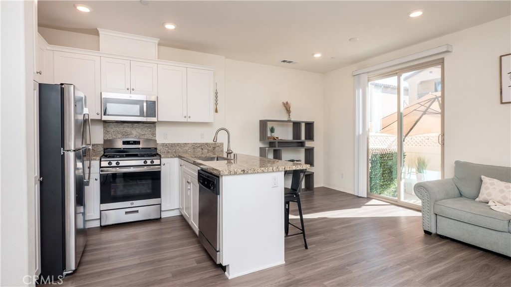 Welcome to this beautiful 3 bedroom 2.25 Bathroom Condo, located in one of the most desired communities of Murrieta. This newer built unit offers a spacious living area with a beautiful kitchen equipped with white shaker cabinets, granite countertops and stainless steel appliances. Also on the main floor you will find a half bathroom, coffee bar area, laminate flooring throughout and the entrance to the attached garage for easy access. All 3 spacious Bedrooms are located on the second floor, the master bedroom offers a walk-in closet, laminate flooring and a master bathroom with a vanity with dual sinks for convenience. Upstairs is also where you will find the Laundry room along with the guest bathroom and two additional bedrooms. Take a look at this quaint porch area, perfect for relaxing on those summer evenings or just winding down on those winter nights. Other amenities include an association pool minutes from this unit, outside showers, spa, bbq area and a small kitchen area in the clubhouse when hosting small gatherings, and a small park. Don't let this opportunity slip away, minutes from old town Murrieta, shops, restaurants and much more.