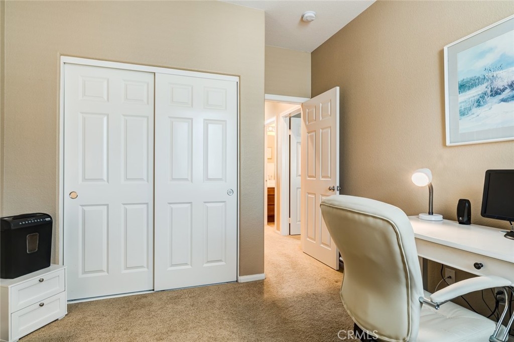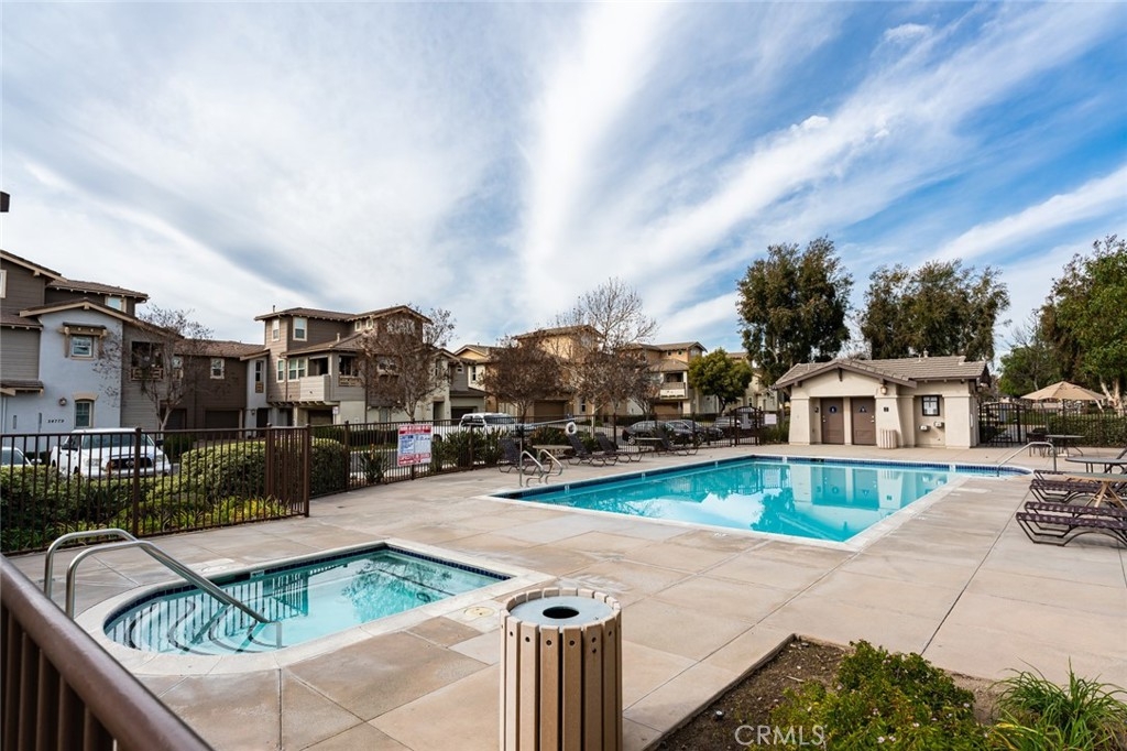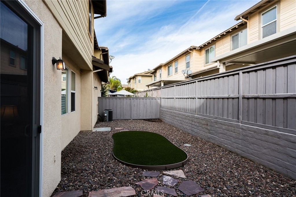 Welcome to this beautiful 3 bedroom, 2.5 bath Murrieta condo located in the highly desirable gated community of Amberwalk. Upon entering this move in ready home, you will immediately notice the open concept living area, hard wood floors, white wood shutters, and warm neutral paint scheme that encompasses the entire main level. The living area also includes a gas fireplace and nook perfect for housing your flat screen tv. On the main level you will also find a half bath with pedestal sink, dining area, and kitchen with granite countertops and stylish black appliances. There is a newer dishwasher, microwave, and whirlpool side by side refrigerator that also comes with this home. Upstairs to the primary bedroom which is filled with natural light, a ceiling fan, walk-in closet and ensuite bath with glass tub enclosure. Additionally, there are 2 secondary bedrooms and a full bathroom upstairs. This home has a built- in sprinkler system, newer hot water heater, and 2 single car garages both with direct access to the home. Laundry is located in the garage and the washer and dryer are included. Outside you will find a low maintenance backyard with desert landscape rock, flagstone, and an artificial turf area. Amberwalk is a peaceful community with beautifully manicured landscaping. It is a community with pool, spa, play area, and BBQ grills, perfect for enjoying summer weekends. The location of this property couldn’t be more perfect! It is within close distance to excellent schools, shopping, restaurants, Murrieta police and fire, and the 15 and 215 freeway, come see for yourself all that this home has to offer.