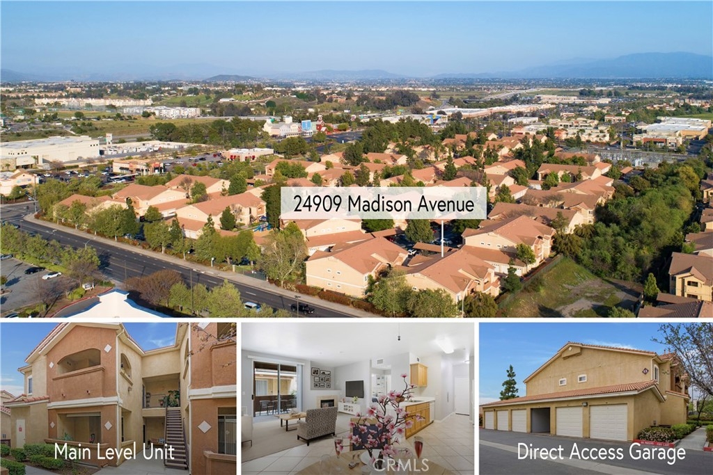 Murrieta’s Must-See Condo! The perfect unit – The Perfect Community – The Perfect Location! Welcome to Madison Park… A Private Gated Community in the Heart of Murrieta! Main Level Single-Story Unit. Direct Access Single-Car Garage. Large Covered Patio. Open Floor Plan. Low HOA Fees. Extremely Well-Maintained and Move-in Ready! This spacious One Bedroom / One Bath Condo is the PERFECT starter home, downsizing home, or investment property. You will truly appreciate the attached single-car garage that offers direct access to the unit’s interior living space. The main entry to this unit is located at ground level with ramped sidewalk access and one short step up onto the entry porch. This benefits those who might need accessibility to their home. As you enter the unit, you are welcomed to an open floorplan between the kitchen, dining, living room, and outdoor spaces. The living room features a cozy gas fireplace and direct access to the spacious covered outdoor patio. Adjacent to the living room is the dining space and massive walk-in pantry/storage room. Enjoy cooking and entertaining friends and family in the galley style kitchen that features a large peninsula, electric range, built-in microwave, and plenty of cabinet storage. On the opposite side of the kitchen is the dedicated laundry space and direct access to the garage. The large primary bedroom features a walk-in closet and direct access to the full bath with shower/tub combo. Additional unit features include central AC/Heat, ceiling fans, tile & carpet flooring, and freshly painted interior. This unit nestled at the back of the community on a private cul-de-sac style street. HOA amenities include gated access, swimming pool, spa, fitness gym, and clubhouse. Parking is allowed in the single car garage and one non-assigned open space. The Madison Park community is conveniently located within walking distance to endless shopping & dining. It also has quick access to the 15 freeway. This is a very clean and well-maintained community with affordable HOA fees. Enjoy endless summer activities and summer concerts at the Murrieta Town Square Park Amphitheater that is just 2 blocks from this unit!