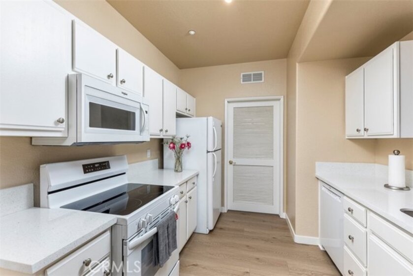 Welcome to your 3-bedroom, 2-bathroom condo. This is a prime opportunity for first-time homebuyers looking for a move-in-ready home. Located in a gated community, this unit offers both peace of mind and resort-style living with access to a sparkling pool, spa and Gym. The interior boasts fresh paint, brand-new luxury vinyl plank flooring in the main living areas, and plush new carpet in all bedrooms. New Stove, New Quartz counters in the kitchen and dining area. Every bedroom features its own walk-in closet, providing ample storage. Garage is right below the Unit. The home is equipped with some new light fixtures and also has some ceiling fans to keep the space bright and cool. Water is also included in HOA. This home is tucked away in a quiet location within the complex, yet ideally situated for an easy commute with quick access to the freeway. Just minutes away from local shopping and dining destinations. You'll want to come and check this out! FHA FINANCING AVAILABLE!!