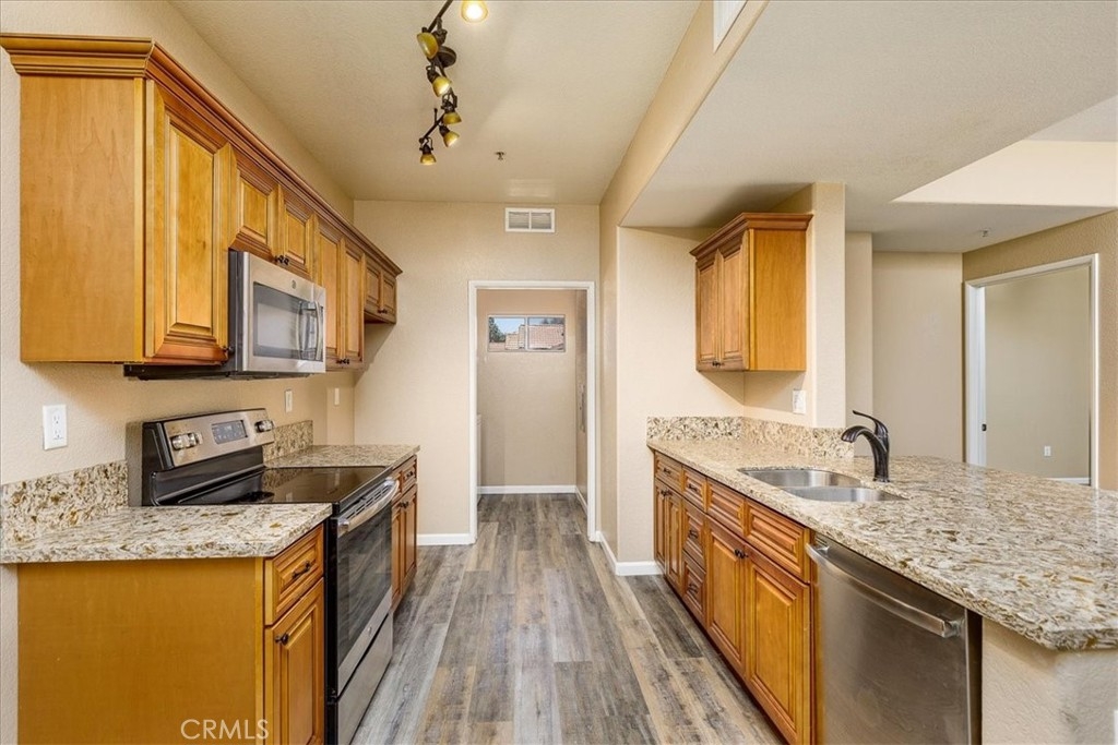 Beautifully remodeled 3 bedroom condo in the highly desirable Madison Park Complex. This second floor, end unit is immaculate! All 3 bedrooms have walk in closets and are good size. Master bedroom and bath are on a separate side of the condo than the 2 additional rooms and one bath to give privacy. All countertops have been updated to a beautiful granite throughout, including kitchen and both bathrooms. All cabinets have been updated throughout as well. Also updated with waterproof LVP flooring in Living Room, Kitchen, hallways and both bathrooms. All rooms and closets have carpet. This unit comes with a single car garage and an assigned covered parking spot. The complex has multiple parks, a huge pool to relax, and a gym with racquetball court. Close proximity to shopping, food and entertainment. Units in this complex don't come up for sale very often, let alone a three bedroom, updated unit. Come see this one before it's gone!