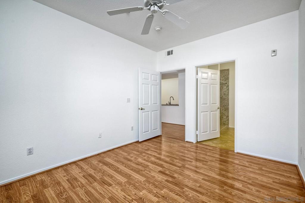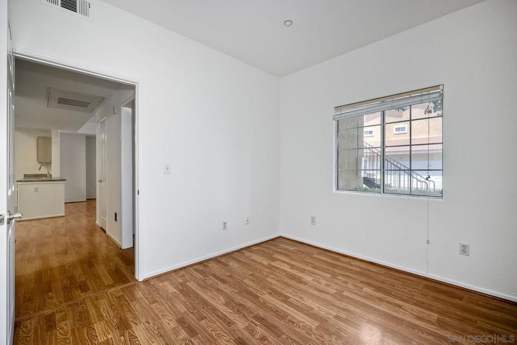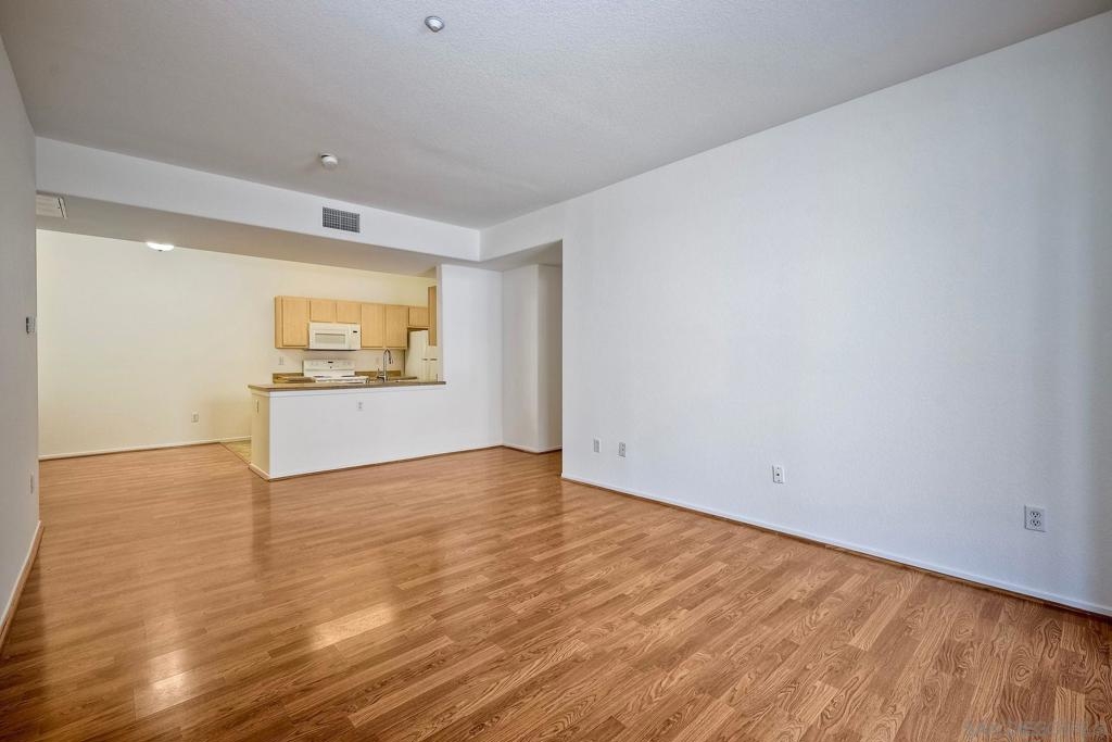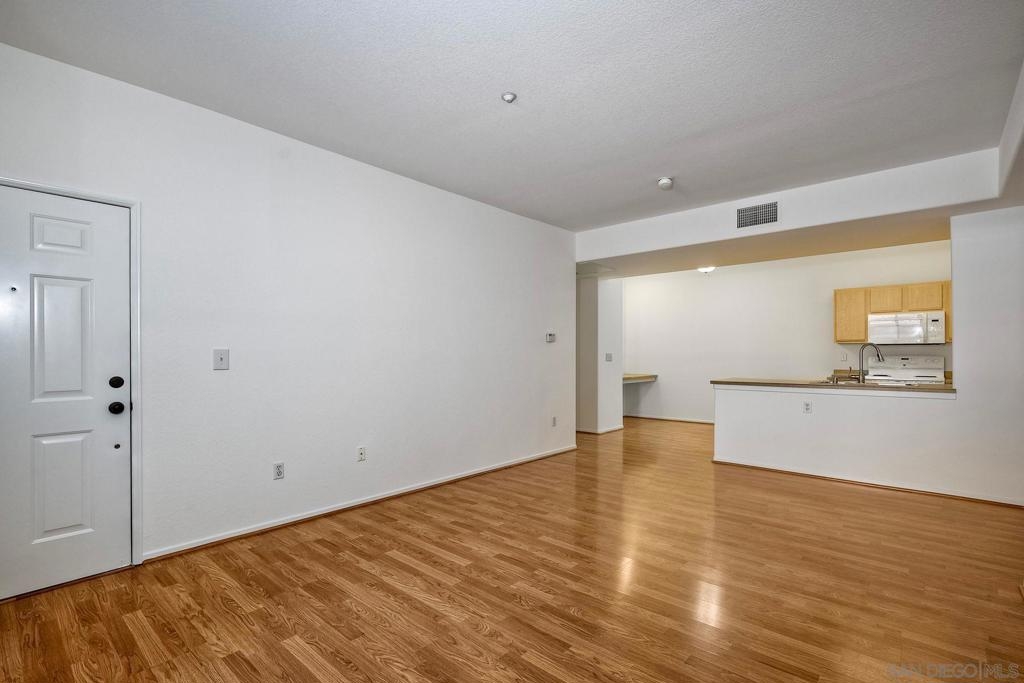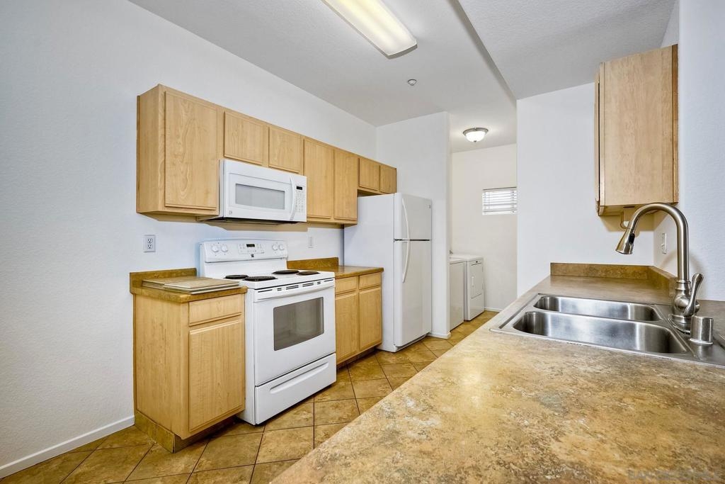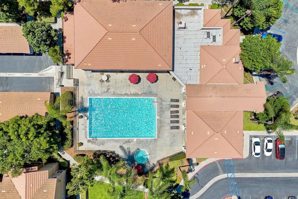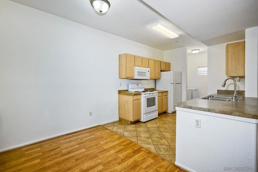 Move in ready, ground level condo is situated in a quiet interior location with nearby parking for guests and a 1 car garage. This highly desirable 3 bedroom floor plan showcases the primary bedroom on one side of the home and the other 2 bedrooms on the opposite side, also newer engineered wood floors, recently painted interior, updated bathrooms and plenty of natural light. The kitchen is open to the spacious living area and out to the covered patio. The generous sized laundry room, tucked next to the kitchen features newer washer/dryer and extra storage. Close proximity to shopping and freeways. This gated community offers a very nice pool and community center. One level no stairs. Single level ground floor entry, Move in Ready, Highly desirable 3 Bedroom, 2 full bathrooms, 1 car garage, private interior location. This home has been thoughtfully laid out to provide a generous living space and maximum storage. Newer engineered wood floors, the entire home has been freshly painted, updated bathrooms, and plenty of natural light! The spacious living room opens up to the Kitchen which hosts a private laundry room with a newer washer and dryer. The Primary Suite is set on one side of the home with a private bathroom. On the opposite side of the home you will find the 2 other Bedrooms with an adjacent bathroom that also has a custom vanity and a shower/tub combo. Plenty of closet space, a very nice walk out patio. Everything has been laid out to function perfectly. A well located convenient single car garage. Plus nearby guest parking. The community has a very nice pool and is gate guarded.