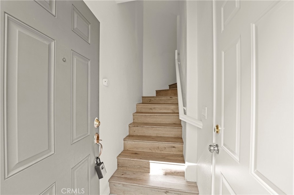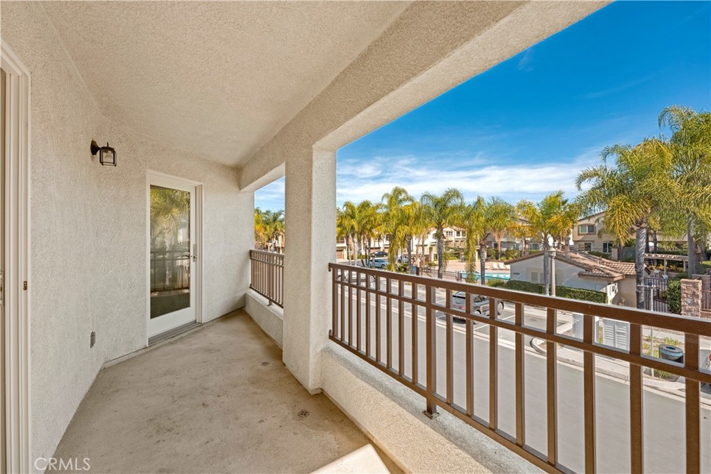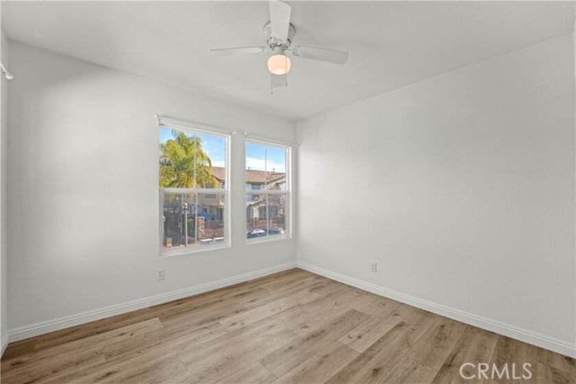 Welcome to 25178 Meadow Walk Street #2, a charming 2-bedroom, 2-bathroom condo nestled in the exclusive gated community of Meadowlane in West Murrieta. Upon entry, you are greeted by direct access to the private one-car garage and a staircase leading to the main living level. The home boasts stylish, clean-lined LVP flooring throughout and an airy, open-concept living and dining area. The kitchen features classic wood cabinetry with ample storage space. The true highlight of this home is the UNOBSTRUCTED pool view, which floods the interior with natural light and creates a serene, open ambiance. Enjoy your morning coffee on the generous private balcony, accessible from both the living room and the primary suite. The spacious primary bedroom includes a walk-in closet and an en-suite bathroom with dual vanities, while the secondary bedroom is perfect for guests or a home office. This unit also includes a dedicated additional assigned parking spot. Residents enjoy resort-style amenities including a pool, spa, and fitness center. Conveniently located near top-rated schools, shopping, and easy freeway access. LOW PROPERTY TAX! Schedule your showing today.