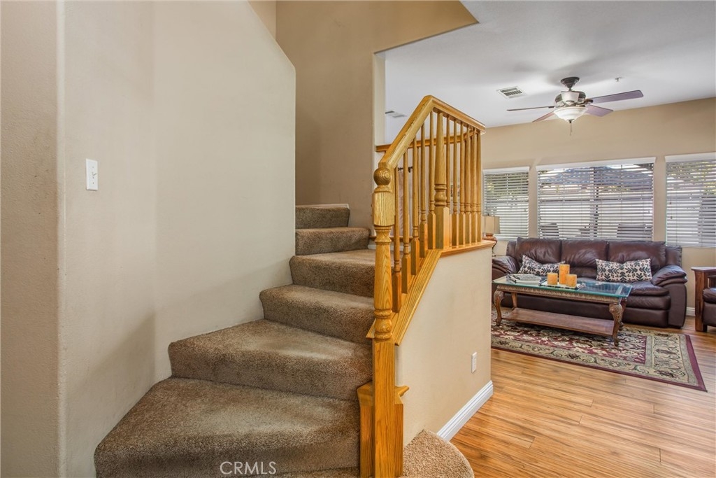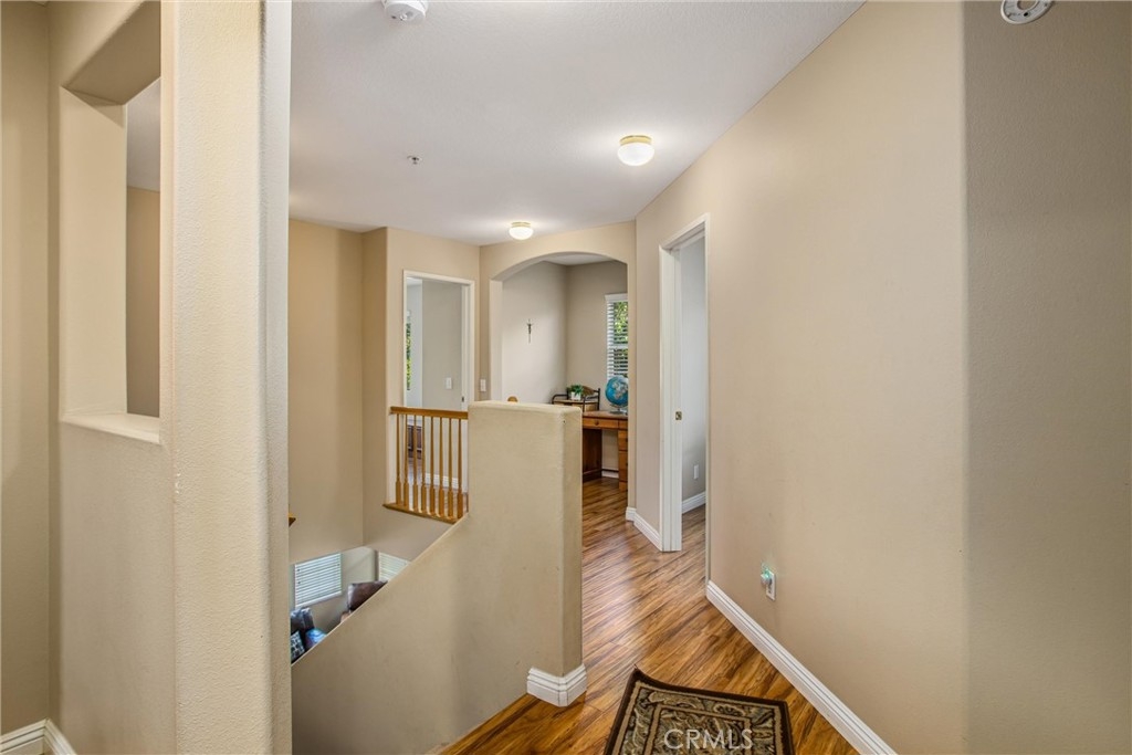This cute end unit in Murrieta's Villas at Old School House gated community creates a private atmosphere. The interior has a sleek and stylish feel that is evident throughout the home due to the modern finishes. Three spacious bedrooms are located upstairs, while the cozy fireplace downstairs boasts a natural color palette and ample room for family and friends. On the second level, The space features a versatile landing area, lending itself perfectly to a home office or a comfortable children's corner, emphasizing its adaptability and potential for various uses. Other rooms offer flexible living space to suit your needs. Parking and storage space are plentiful in this property thanks to the large two-car garage. You can make this your oasis if you don't miss out!