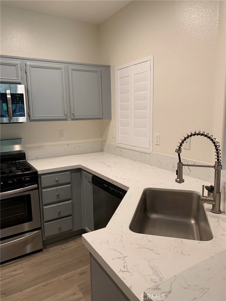Absolutely stunning one bedroom one bath condominium has been fully upgraded to the highest standards. This turnkey unit features quartz countertops and upgraded cabinetry and flooring. A fully enclosed garage is just steps away from this first floor unit. Beautiful common amenities are offered with a low monthly HOA fee. The pool, spa and gym are just steps away from this unit. Show your most discriminating clients, they will be delighted.