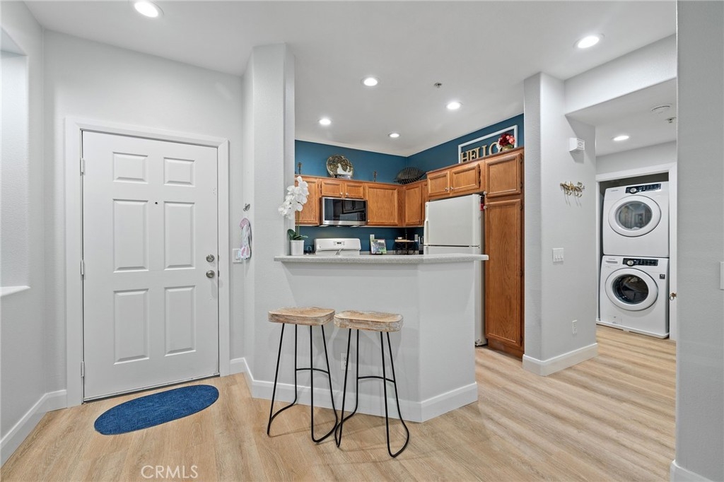 LOWER HOA's and GROUND LEVEL!!! Many beautiful upgrades, welcome to this spacious one bedroom one full bathroom in a spectacular gated community of Verona. Upgraded laminate flooring throughout, recessed lighting, ceiling fans, indoor laundry, community pool, spa, and huge workout room. Community barbecues great for parties by the pool. Attached large outdoor patio, plenty of storage, cozy indoor fireplace fully upgraded. This home is immaculate, and has all you'll need. Come step into this cozy kitchen area along with breakfast nook, there's plenty of room to cook and entertain guests. One detached single car garage. Perfect location for dining and shopping. This home is move-in ready! Immaculate!