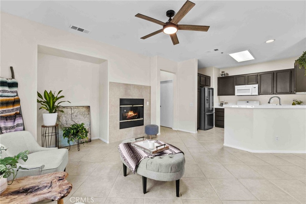 Discover this meticulous Ready to move in Murrieta Condo located in the Arboretum gated community. Enjoy your fireplace in your Living room off of kitchen, with plenty of light. Bright open Kitchen with tile flooring and tile kitchen counters and breakfast bar. Gas stove, a microwave and dishwasher. Walk out the dining room through the sliding doors to your private balcony to enjoy the amazing views! From the interior of the home also features amazing views. The home offers a large inside laundry room with shelves. 2 large bedrooms and full bathrooms, Master has a walk in closet. Hallway linen cabinets, New paint throughout, brand new carpet. Direct access from inside of home to your own garage, and there is additional unassigned parking throughout the community. Your clients will love the feeling of the very open floor plan. Located in the corner offers more privacy. Residents will appreciate the close proximity to freeway access, notable shopping, dining and recreation, as well as the onsite amenities, including a clubhouse, 2 pools and 2 spas. Plenty of walkways for those early morning and afternoon walks. Enjoy one of the conveniently located gazebos. Water and trash are included.