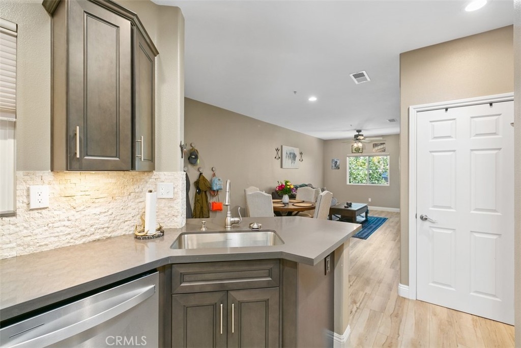 Welcome Home to your Highly Upgraded Move-In ready home with beautiful designer touches! Home was COMPLETELY REMODELED in 2021 with over $50,000 in improvements! The custom kitchen opens up to the living Room and dining area and has beautiful Quartz countertops, soft close cabinets and drawers, pull out spice rack, two Lazy Susan turntables, custom backsplash, under cabinet lighting, farmhouse sink, stainless steel appliances, upgraded faucet, glass rinser, and bar seating. The bathroom was completely redone in 2021 with new bathtub and fixtures, new toilet, new vanity, new mirror, new light fixture, and new exhaust fan that changes lighting and connects with Bluetooth to play music. The master bedroom has newer carpet and a custom closet organizer. There is beautiful Luxury Vinyl plank throughout the rest of the home along with newer baseboards and custom paint. All doors, door casings, and door hardware have been replaced. All recessed lights were changed to LED lighting and all outlets and electrical switches were updated. Down the hall is a new GOOGLE Nest thermostat and laundry closet with an included newer stackable washer/dryer. The windows have custom cellar shades that open from the top or bottom. Off the living room is a covered balcony perfect for relaxing. The A/C unit was replaced approximately two years ago. Home also comes with detached one car garage. Located in the desirable Verona Community that is gated and offers amenities such as pool, spa, gym, and BBQ. This home truly has it all!