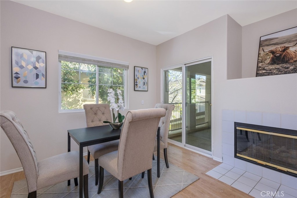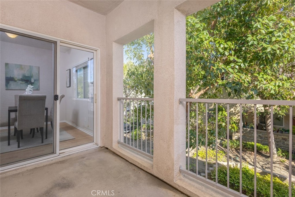 Tucked away in a peaceful, gated enclave, this beautifully updated 1-bedroom, 1-bath upstairs unit is move-in ready and made for effortless living. Fresh new paint and plush carpet give the space a clean, modern feel, while the smart layout offers both function and flow. Step into a light-filled living area where comfort meets convenience—complete with a cozy fireplace and a breakfast bar that’s perfect for casual dining or late-night chats. The kitchen is efficiently designed with plenty of storage, and the in-unit laundry adds everyday ease. One of the true highlights? The ultra-private balcony, enveloped by mature landscaping that creates your own personal retreat—ideal for morning coffee or winding down under the stars. Whether you’re enjoying quiet time or entertaining guests, this space feels like an extension of your home. The well-maintained community offers a full suite of resort-style amenities, including a sparkling swimming pool, relaxing spa, and a fully equipped fitness center—all just steps from your door. Enjoy the simplicity of low-maintenance living while still having access to everything you need. Conveniently located within 15 minutes of shops, dining, and both the 15 and 215 freeways! Amazing value - Welcome Home!