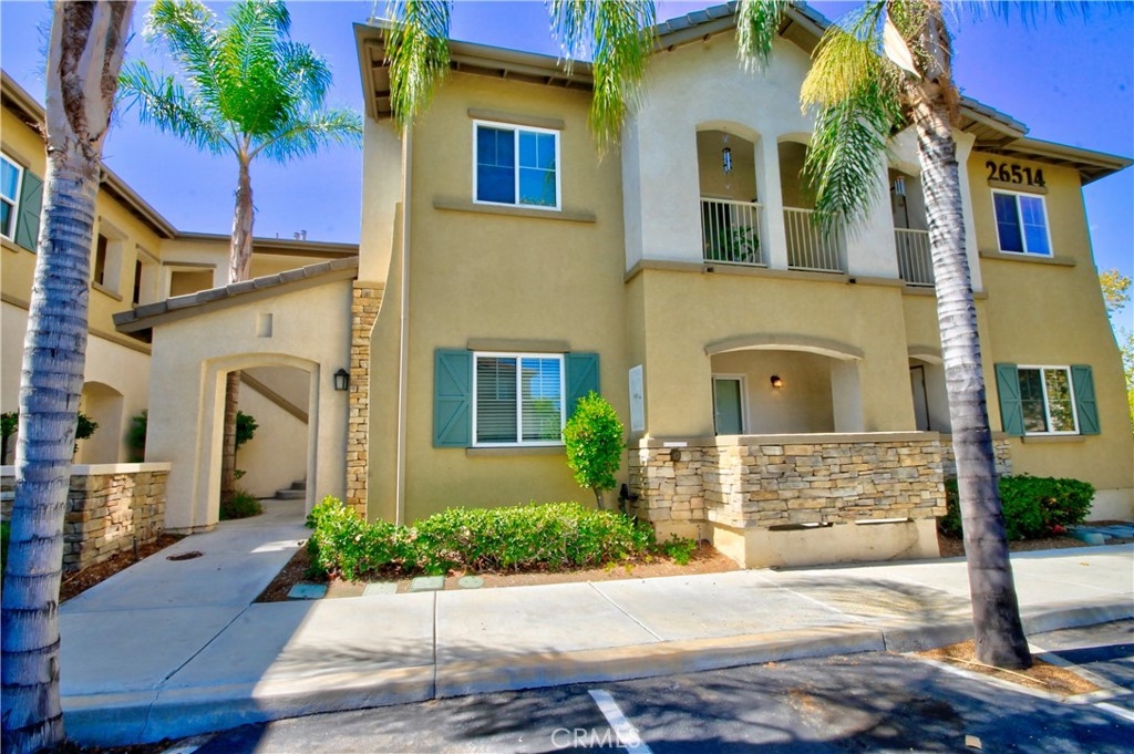 Great investment opportunity or first time home! Beautiful ground floor two bedroom condominium in the Verona complex in Murrieta! Nice open concept with low maintenance laminate floors and nice neutral colors. Just off the entry is the dining and living area which boasts a cozy fireplace and access to the balcony through the sliding glass door. The kitchen has everything you need with lots of cabinets, and plenty of counter space. The washer and dryer are conveniently located in the hallway. Right down the hallway are two generous sized rooms with the master having its very own private bath. Detached garage included with the unit. The gated Verona community includes great amenities such as a fitness center and huge pool area! Truly a must see home, don't miss out on the opportunity as this one will not last!
