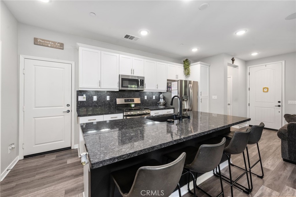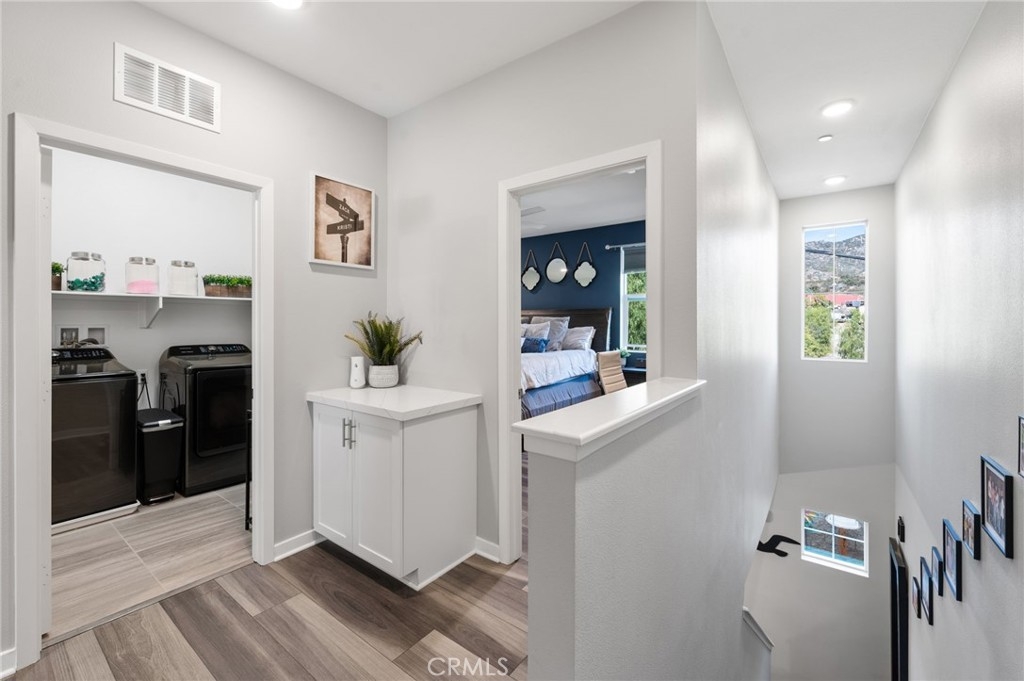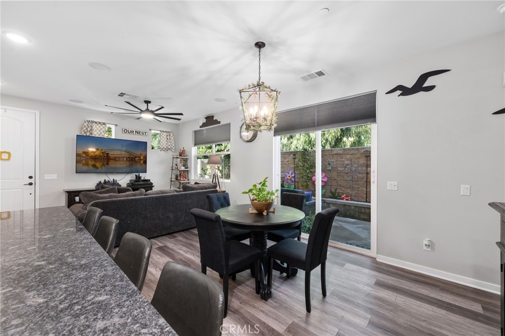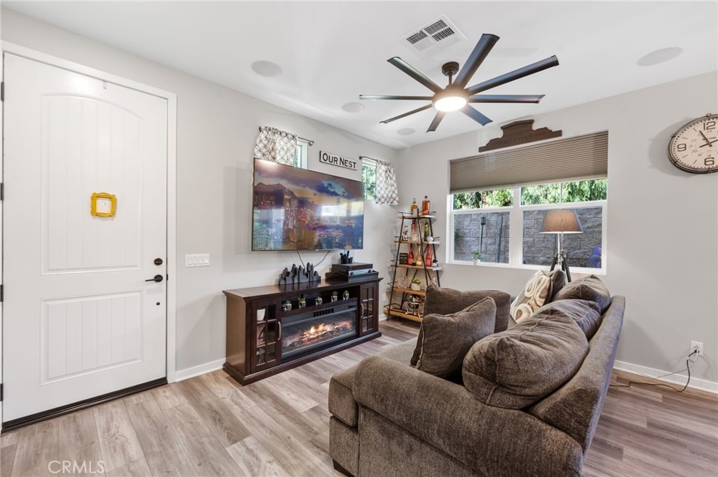 BACK ON MARKET!!! Buyer could not perform. 27447 Bella Lane is a conveniently located, gated community in a family-friendly neighborhood. Residents enjoy proximity to parks, shopping centers, grocery centers, Costco, Target and walking distance to Vista Murrieta High School. Easy access to the 215 freeway, approximately a half miles distance adds to the convenience of this location. Step into a bright and spacious living area that welcomes you with an abundance of natural light. The whole house has been recently upgraded with luxury vinyl floors, top and bottom. The open floor plan seamlessly connects the living room, dining area, and kitchen, providing a perfect space for family gatherings and entertaining. The kitchen is a chef's delight, featuring granite countertops, stainless steel appliances, ample counter space, and storage. Enjoy meals in the adjacent dining area that leads to the backyard patio. This property also has no rear neighbors providing additional privacy. The bedrooms are generously sized, offering comfort and privacy. The master suite is a true retreat with dual sinks, upgraded quartz countertops, natural lighting and features a custom built master closet with built in shelves. Enjoy the benefits and protect your appliances with a built in water softener that's included with the home, and keep your home cool during hot summer days with the built in Quite Cool, whole house fan. Additional 4'x 8' storage racks are included in the garage for personal items to be tucked away without compromising garage space. If you're looking for a turnkey home, conveniently located near countless shopping options and a quick 10 minute drive to the Temecula Promenade mall, this home is for you!